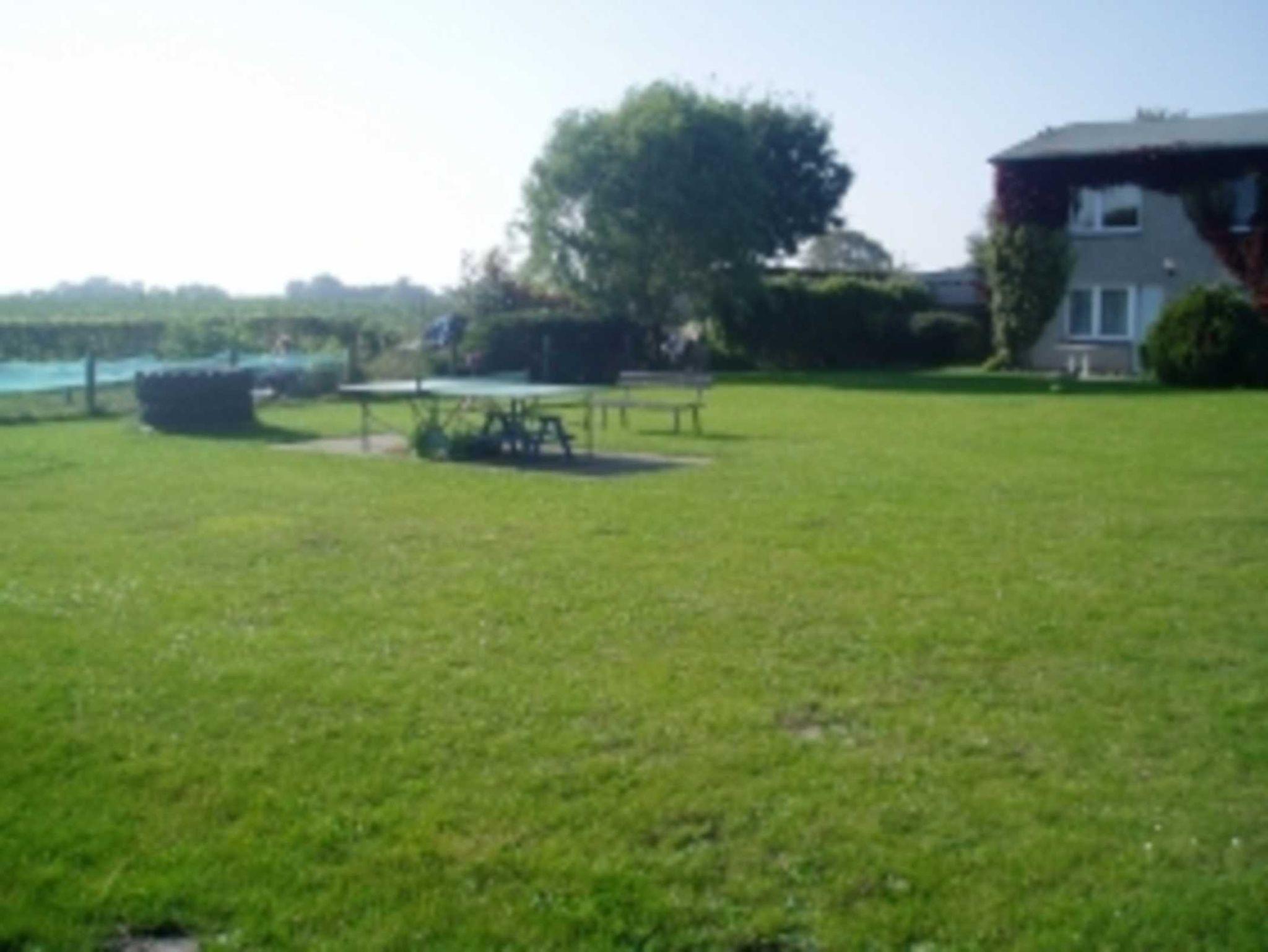 Eine große Spiel- und Liegewiese mit Tischtennisplatte, Volleyball, Fußball, Schaukel und Sandkasten lädt zu verschiedensten Aktivitäten ein.