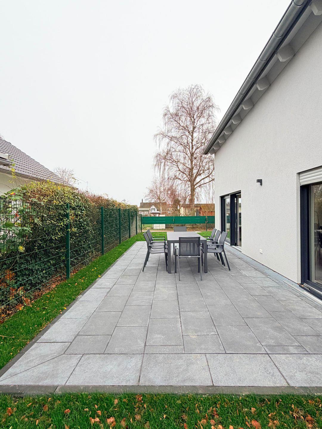 ?Der Außenbereich lädt ebenfalls zum Verweilen ein: Auf der großen und sonnigen Terrasse können Sie morgens ein ausgiebiges Frühstück genießen, abends gemütlich grillen oder einfach das Rauschen des Meeres in der Ferne auf sich wirken lassen. Der umzäunte Garten bietet sowohl Kindern Platz zum Spielen, Erwachsenen Raum zum Erholen oder Fellnasen die Chance zu toben.