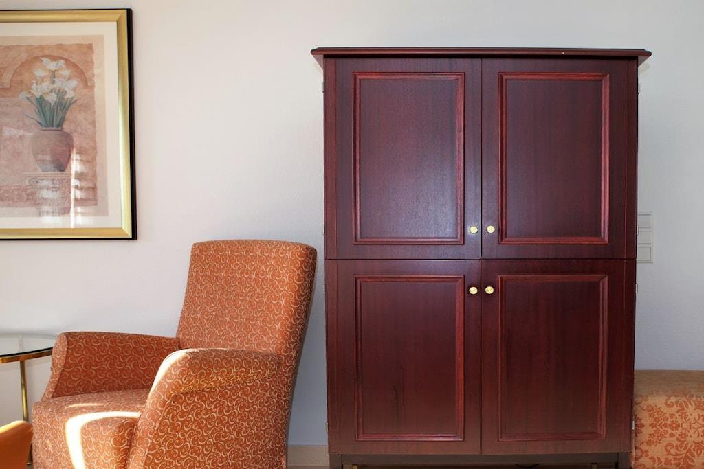 Første etasje: (Stue/soverom(dobbeltseng, TV), bad(dusj)) , , Internett-tilgang, tørketrommel, vaskemaskin, balkon(hagemøbler, markise), oppvarming, tørkeskap