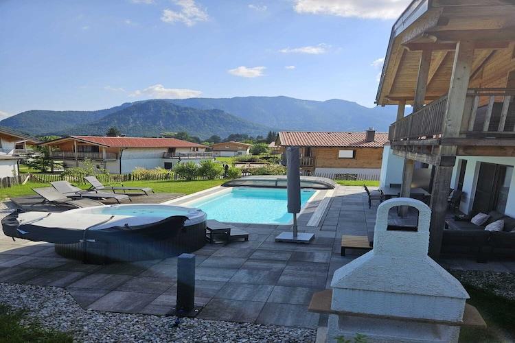 Chalet Gamsknogel er den høyeste hytten i feriestedet Inzell, med fantastisk utsikt over feriestedet og Chiemgau-alpene. Hytta tilbyr den høyeste komforten med vedovn, privat utendørsbasseng og badstue. Den synlige takstolen av oppkuttet, naturlig gran gir hytta en koselig karakter. I tillegg til bad med dusjkabinett av naturstein og tilgang til badstue, er det også stor stue og spisestue med stort hjørnekjøkken i første etasje. I tillegg til de tre soverommene er det også bad med badekar i øverste etasje. Fra stuen kommer du direkte inn på den store terrassen med svømmebasseng og salong. Et annet høydepunkt er den private grillplassen med terrasse og stor parasoll. Feriestedet Inzell er omgitt av de lokale Chiemgau- og Berchtesgadener-alpene og i umiddelbar nærhet av spa- og badeparken Inzell (650 m over havet). Opplev det imponerende Inzell-landskapet, som er preget av en solrik dal og pittoreske fjellenger og fjellvann, og nyt det vakre panoramaet over fjellskogen og heiens eventyrstier under en fot- eller sykkeltur. Om vinteren har du gode muligheter for skøyter og ski. Vintersportsanlegget Max Aicher Arena ligger i landsbyen og Kesselalm-heisene Inzell og Pommernlifts i Adlgaß er i nærheten. Detaljer: WiFi Forbruksbaserte energikostnader, sengetøy, håndklær, sluttrengjøring