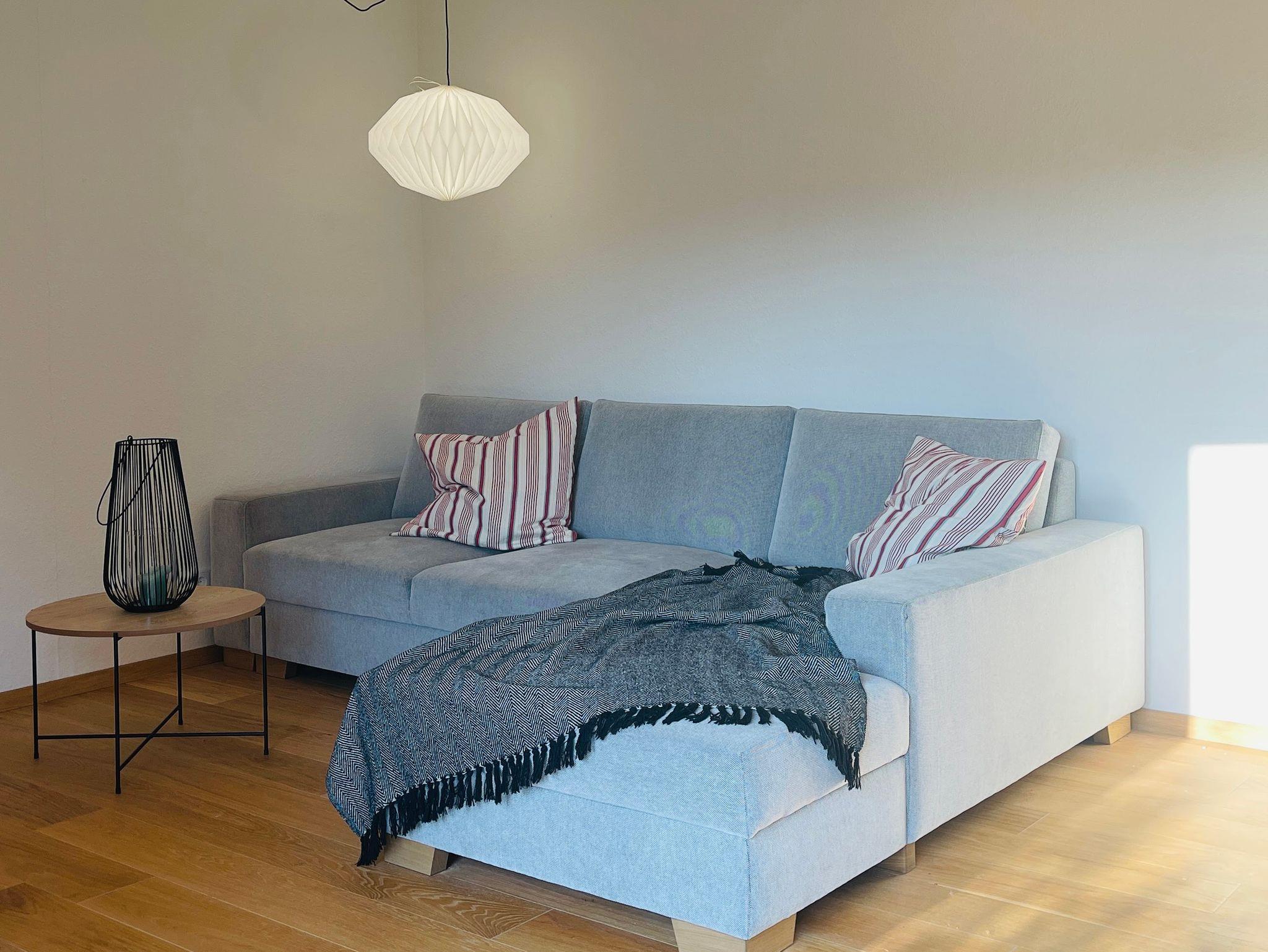 Der helle, sehr geräumige Wohn-Essbereich verfügt über eine gemütliche Couch und einen Esstisch für 6 Personen. Die Küche ist komplett eingerichtet mit Geschirrspüler, Mikrowelle, Kühlschrank/ Gefrierfach, Cerankochfeld, Kaffeemaschine (Nespresso & Filtermaschine), Wasserkocher, Toaster, etc.