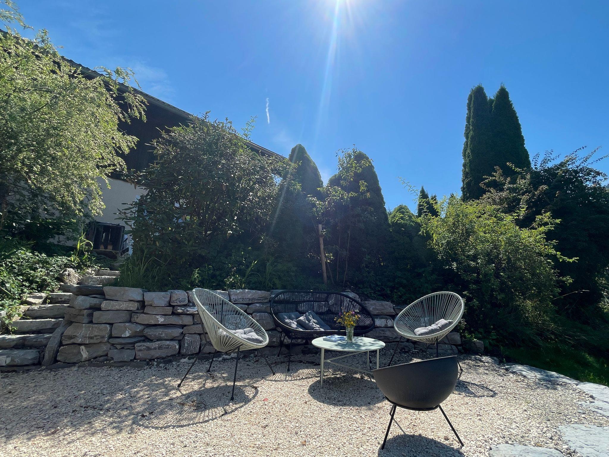 Schöne Gartenmöbel, eine Lounge Ecke und ein Grill warten auf Sie.