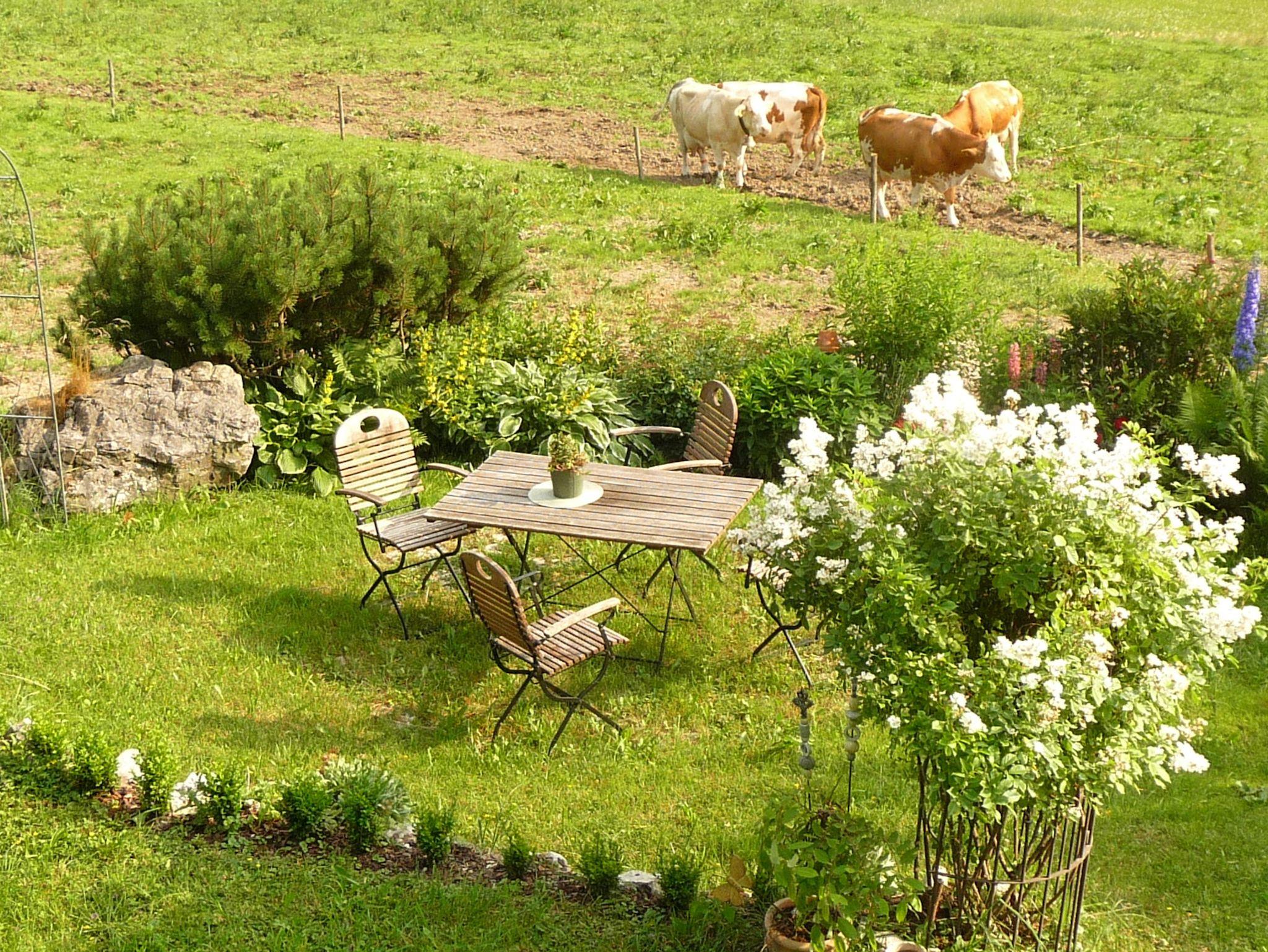 Genießen Sie die traumhafte Panorama Aussicht, aus dem Liegestuhl vom Balkon Ihrer Ferienwohnung aus. Von weitem ganz sanft sind nur die Glocken der Kühe zu hören, die friedlich grasen.