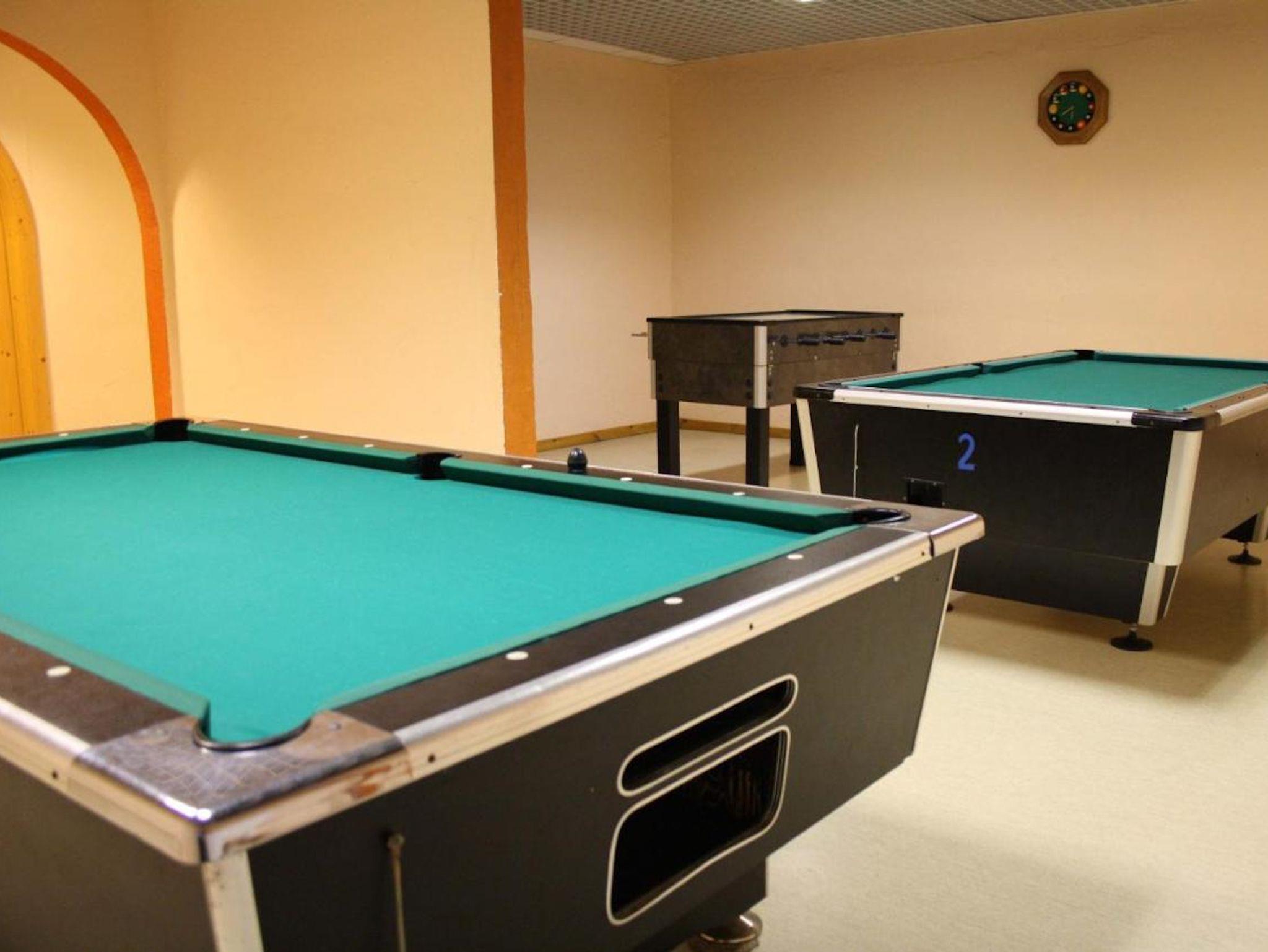 Das Haus:Wellness in unserem Wellness Bereich kannst Du neue Kraft und Energie tanken.Schwimme ein paar Bahnen im beheizten Pool (ca. 30° C).Genieße die Wärme in einer der beiden Saunen.Die Aroma Sauna bietet mit 65°C eine angenehme Wärme mit wohltuenden Düften und LED-Lichtspiel.In der Finnischen Sauna wird Dir bei 90°C so richtig eingeheizt.SportWenn es dir mal nicht möglich ist, Deinen Sport an der frischen Luft auszuüben, steht Dir im Untergeschoss unser Fitnessraum zur Verfügung. Egal ob Laufband, Crosstrainer, Spinningbike, Fahrräder, freie Gewichte, Kraftgeräte oder einfach nur eine Matte, hier ist alles zu finden.Falls Du den Wettbewerb suchst, kannst du gerne jemanden an der Tischtennispatte herausfordern. UnterhaltungBei schlechtem Wetter hast Du im Untergeschoss die Möglichkeit, Dich am Airhockey auszutoben oder beim Billiard dein Können unterbeweis zustellen.Falls Ihr einen Gesellschaftsabend bei angeregten Gesprächen oder in Form eines Spieleabends verbringen wollt, steht euch ein Gesellschaftsraum im Untergeschoss zur Verfügung.Eine Waschmaschine mit Münzeinwurf findest Du im Untergeschoss.