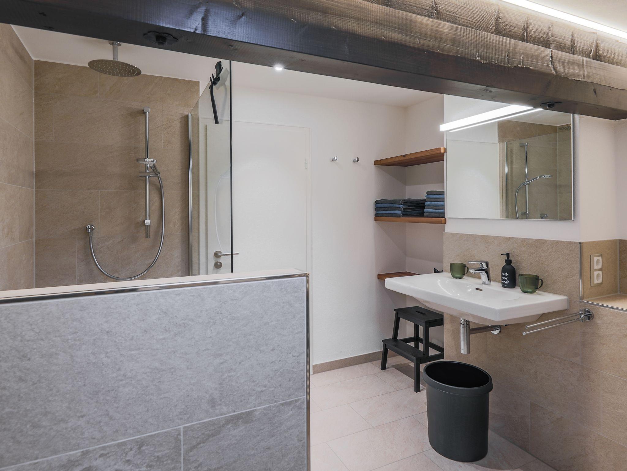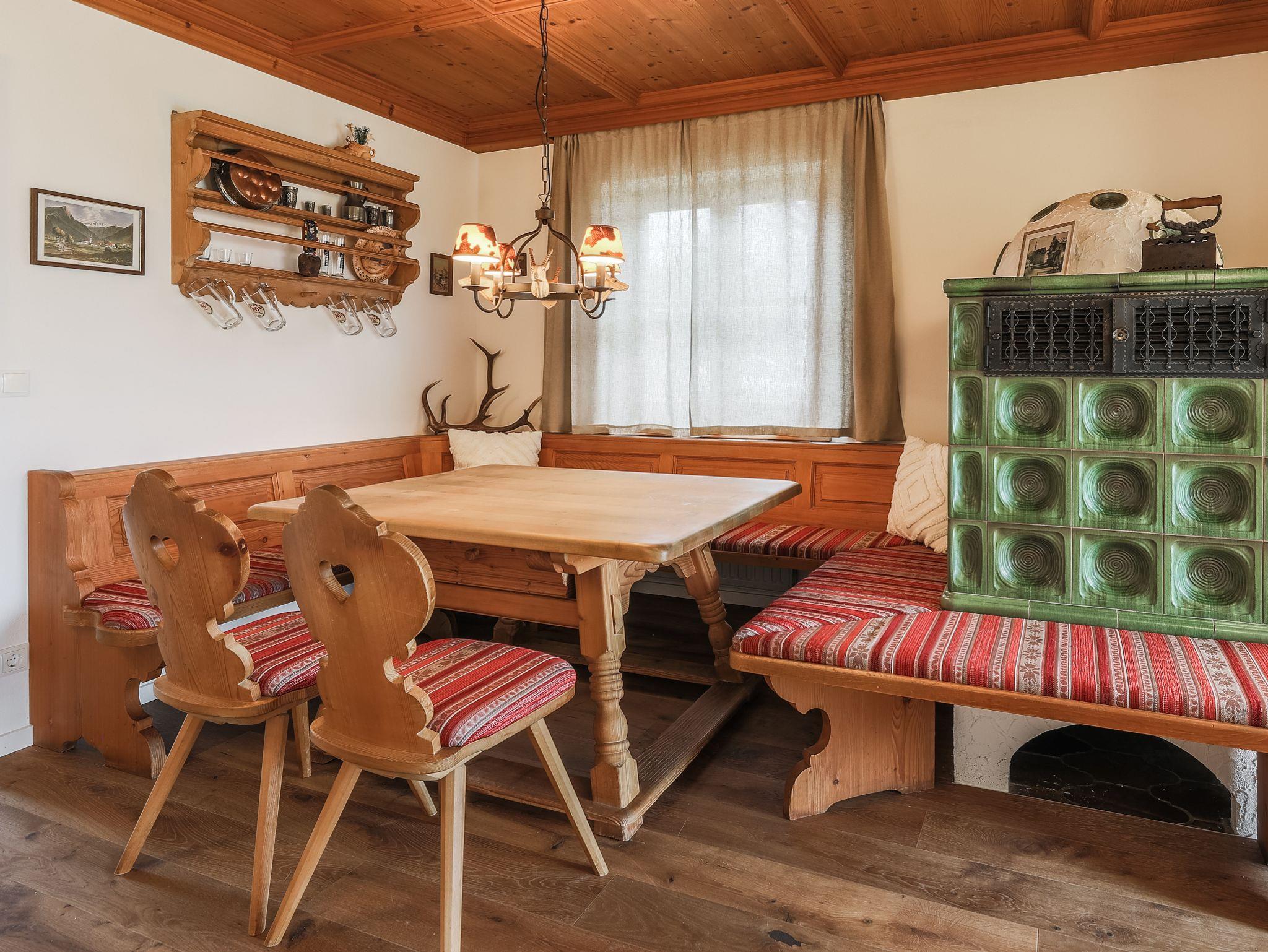 Im Dachgeschoss befinden sich 2 DZ (20m² und 15m²), das 4-Bett Kinderzimmer (18m²), ein Bad und eine extra Toilette.Ein weiteres DZ mit Bad (21m²) ist im Erdgeschoss. Dazu Küche, Wohnzimmer, Stüberl mit beheizbarem Kachelofen (Holz vorhanden), Bibliothek/Arbeitszimmer, extra Garderobe.Die Küche enthält• Geschirrspüler • Kühlschrank mit Gefrierfach • Induktionsherd mit 4 Platten, große Auswahl an Töpfen und Pfannen. • ein Backofen• Konventionelle Filterkaffeemaschine, Nespresso Kapselmaschine, Espressokanne • Toaster • Geschirr und Besteck für 10 Personen • sonstiges: von Standardgewürzen bis Kaffeefilter und Müllbeutel sollten Sie alles vorfinden, was Sie brauchen. Auch an Spülmittel brauchen Sie nicht zu denken. Im Keller können Sauna, Ruheraum und Spielzimmer genutzt werden. Des weiteren steht eine Waschküche und ein Trockenraum zur Verfügung.Insgesamt ca. 210m² Wohn- und Nutzflättwäsche und Dusch/Handtücher werden gestellt. (Bitte ggf. Bademantel und Saunatuch selbst mitbringen) In den 2 Bädern sind je ein Haartrockner vorhanden.Waschmaschine und Trockner in der Waschküche.WLAN, Drucker, TV, Musikanlage, PS4, Profi Kicker, Darts, Brettspiele, Bücher aus der Bibliothek, Klavier, Kinderbett stehen zur Verfügung.Terrasse und Garten:Auf der teils überdachten Terrasse lässt es sich auf den Lounge Möbeln gut aushalten (kleine Untertreibung), oder auf den Sonnenliegen in der Wiese, bzw. unter dem 40 jährigen Apfelbaum einfach nur die Umgebung genießen.Ein Grill, der große Holztisch mit Bänken und das leckere BBQ kann beginnen. An der Garage befindet sich eine Wallbox zum Laden von E-KFZ.Die Garage selbst ist relativ schmal (da Baujahr 1977) und ist idealerweise als Rad und Skidepot zu nutzen.