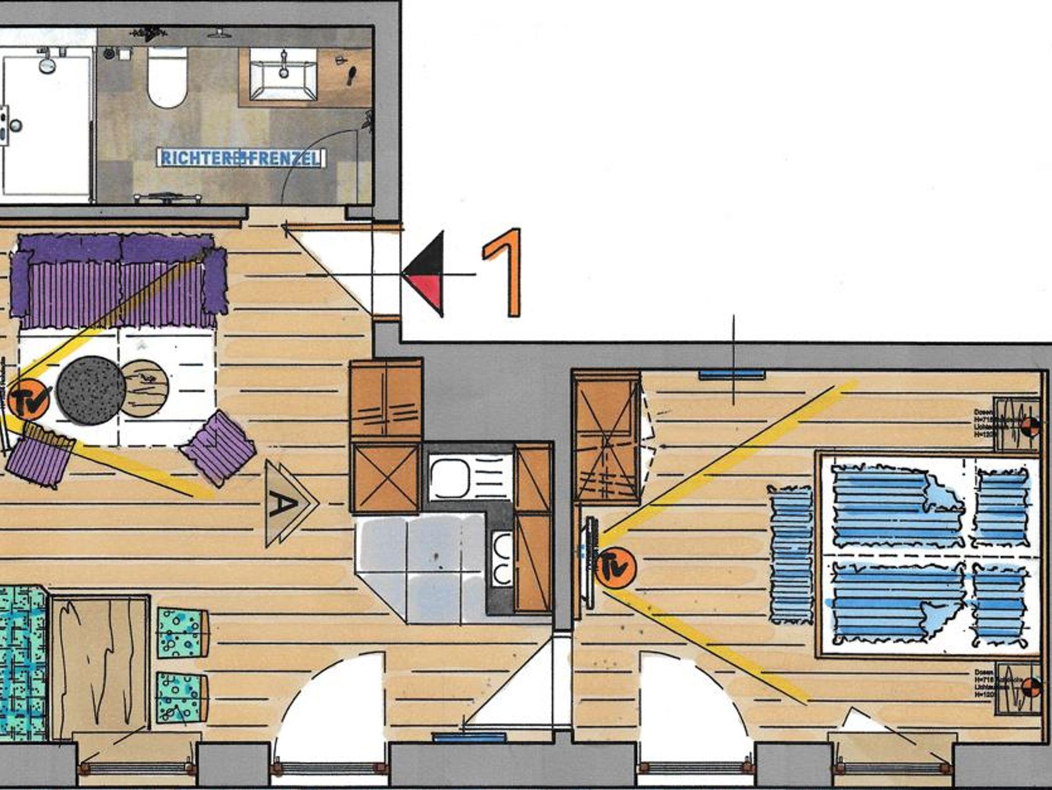Appartement 1 (38 m2 im Obergeschoss und für 2-4 Personen geeignet)