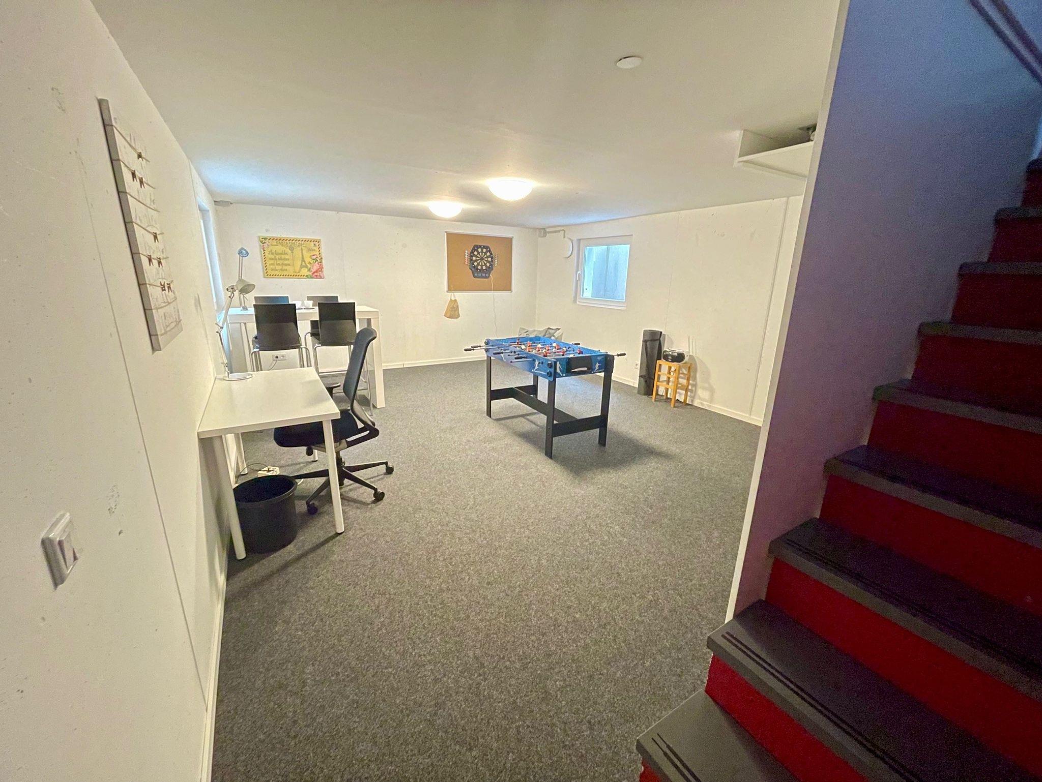 Kinder ab 4 Jahren sind herzlich willkommen. Wir haben im Untergeschoss ein Spielzimmer mit Schreibtisch, Sitzgelegenheit, Kicker und elektrischem Dart.