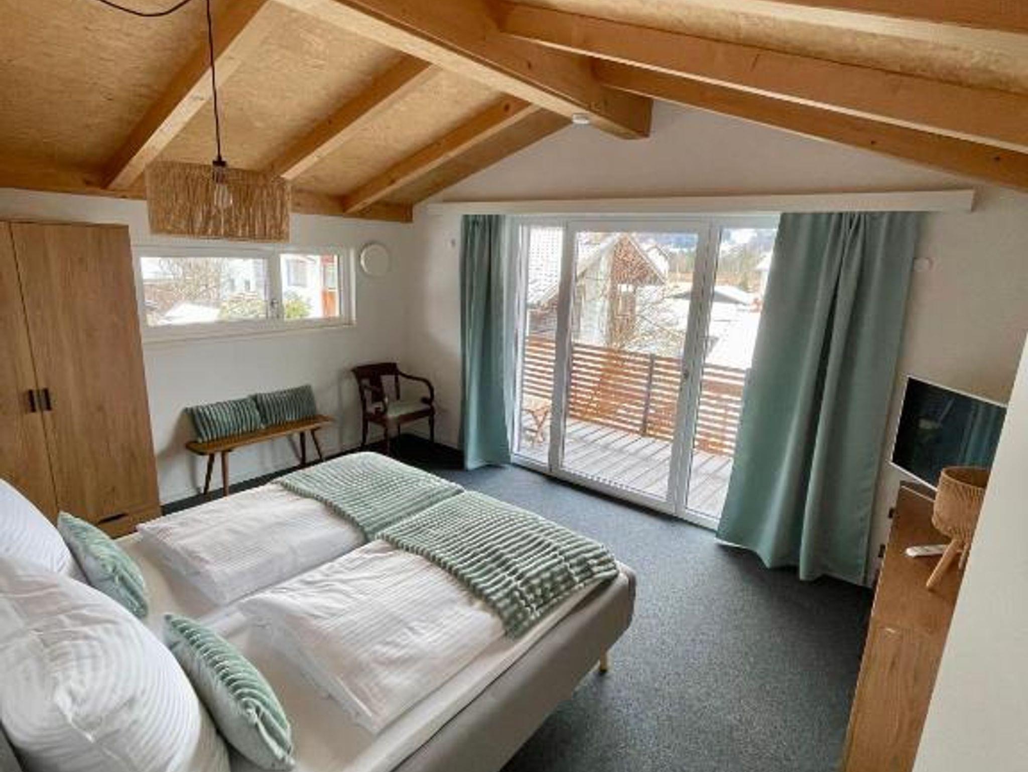 Im Obergeschoss liegt das Hauptschlafzimmer mit Doppelbett, schönem Westbalkon und einem zusätzlichen TV Gerät.