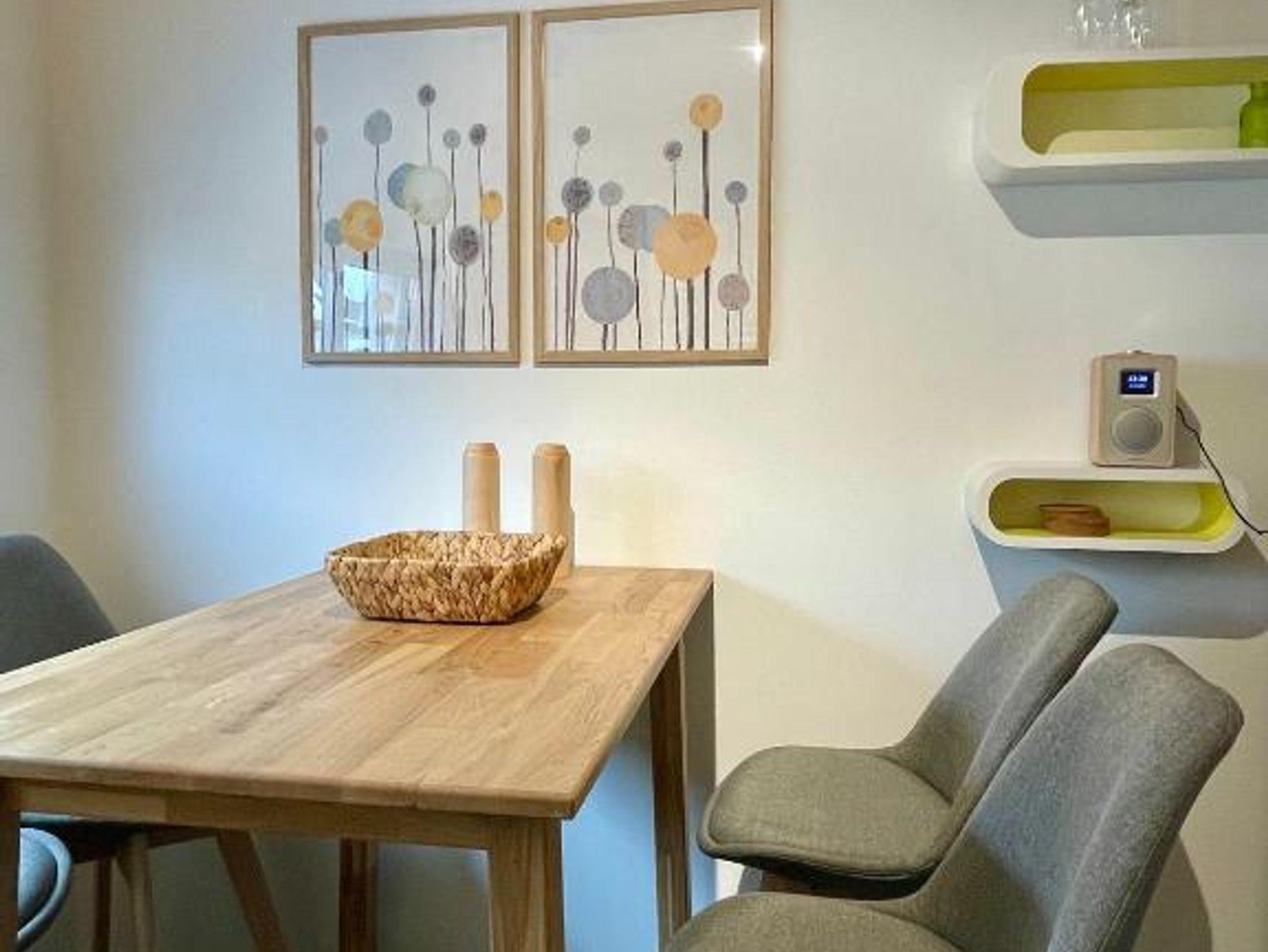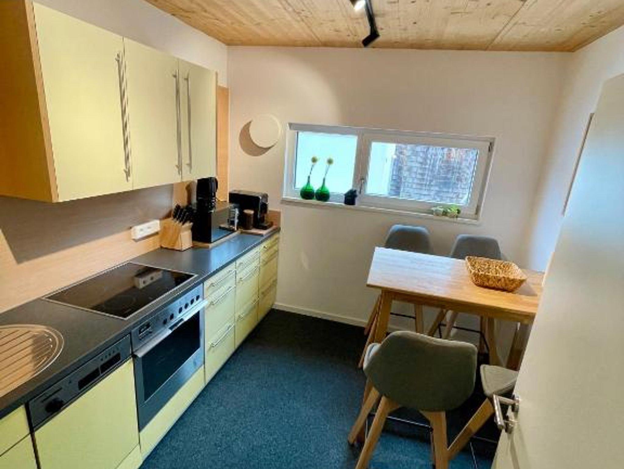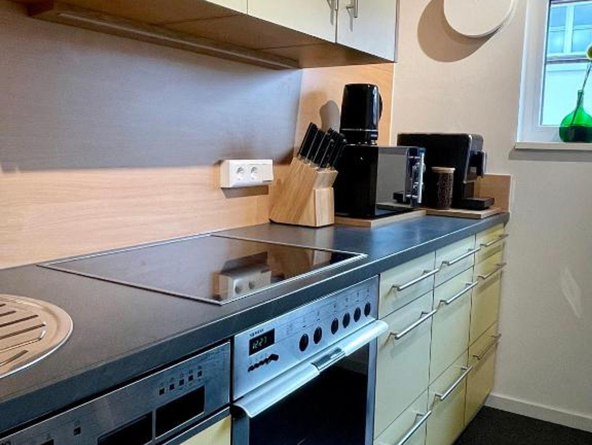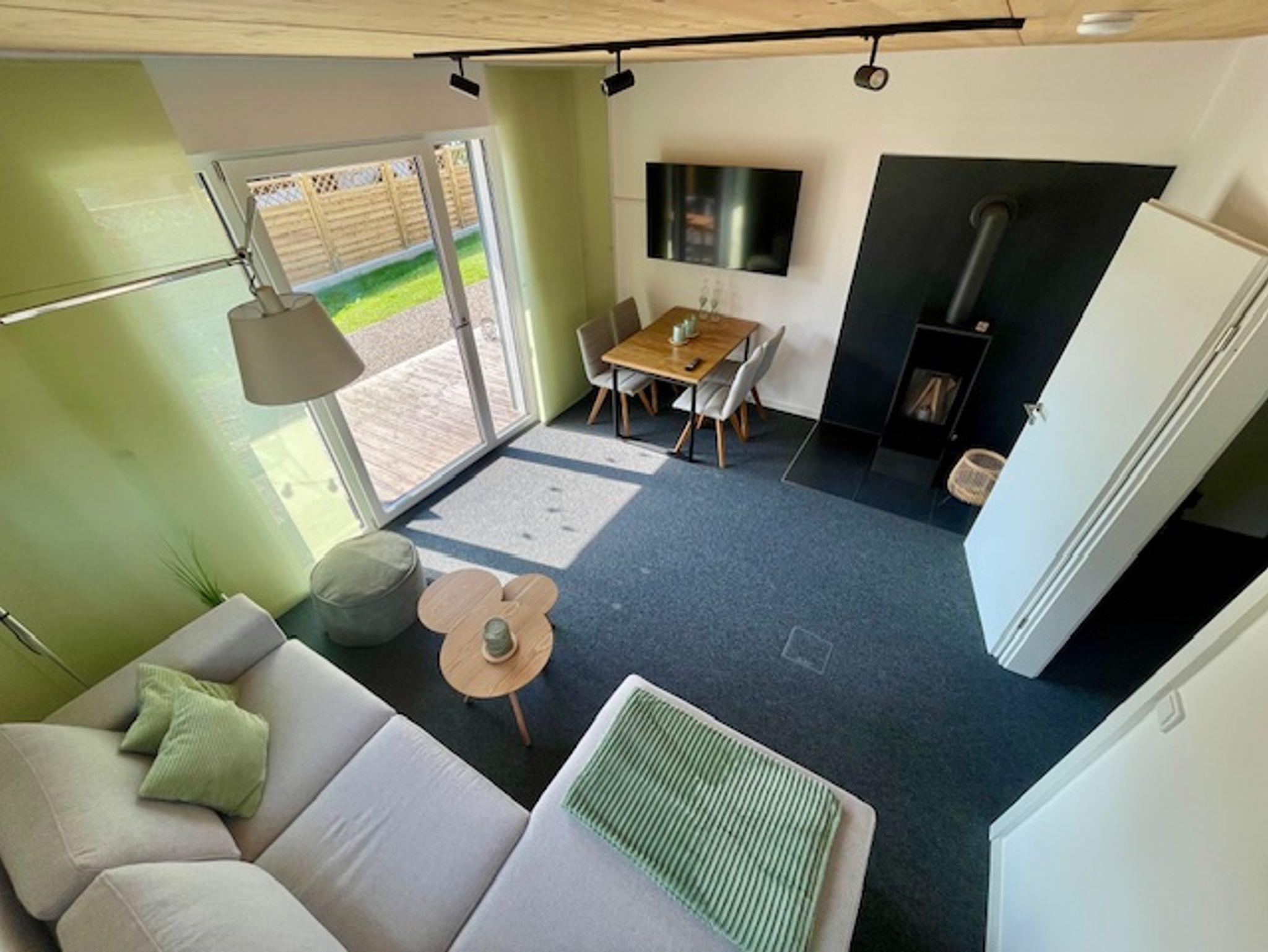 Das Haus verfügt im Erdgeschoss über eine voll ausgestattete Küche (Ceranfeld, Backofen, Spülmaschine, Kaffeemaschine, Milchaufschäumer, Wasserkocher, Eierkocher, Mixer, Kühl/Gefrierschrank, Mikrowelle etc.) mit Sitzgelegenheit, ein Wohnzimmer mit Couch, Essbereich, TV und einer Holzterrasse Richtung Westen. Hier können Sie wunderbar die Sonne genießen. Gartenmöbel stehen für Sie bereit.