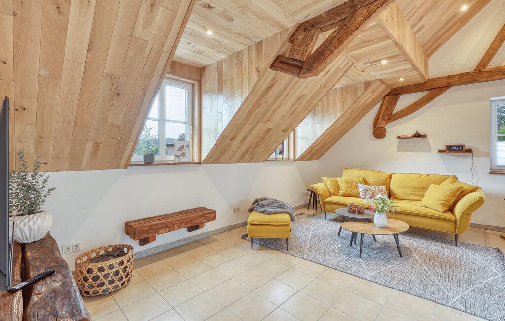 Fordyp deg i sjarmen til dette praktfulle feriehuset, som tilbyr deg komfort og stil i hjertet av Eifel-landskapet. I Irrhausen, midt i Eifel-landskapet, tilbyr dette overnattingsstedet komfort og stil. Gled deg til synlig bindingsverk, kjærlig design og materialer av høy kvalitet. Det smakfullt innredede interiøret skaper en koselig atmosfære der du umiddelbart vil føle deg som hjemme. Velværeavdelingen med badstue, boblebad og toalett, som er direkte tilgjengelig fra terrassen, inviterer deg til å slappe av etter en dag full av opplevelser. Denne innkvarteringen består av flere boenheter, og er ideell for større grupper eller familier som også ønsker å nyte privatlivet.