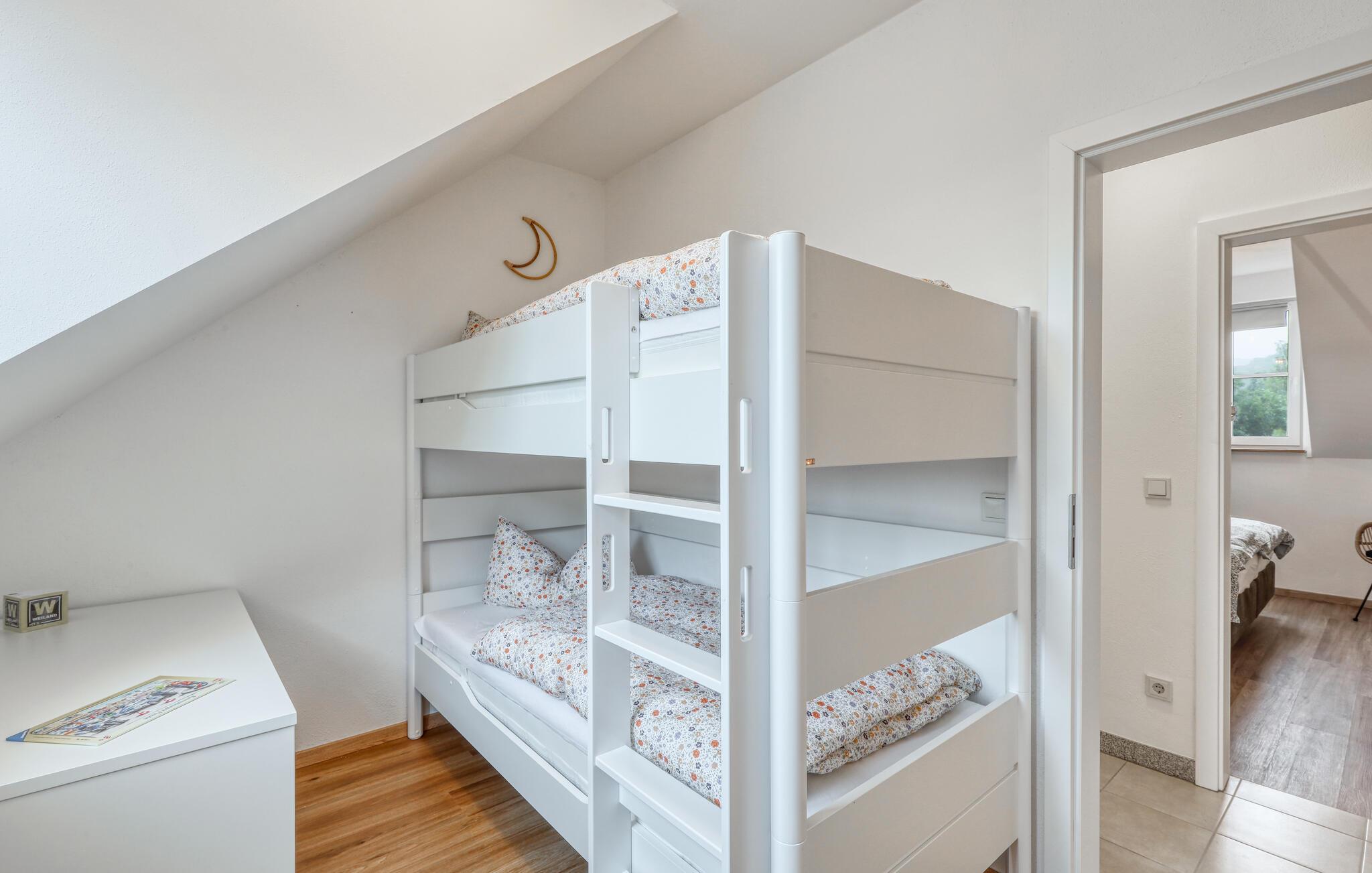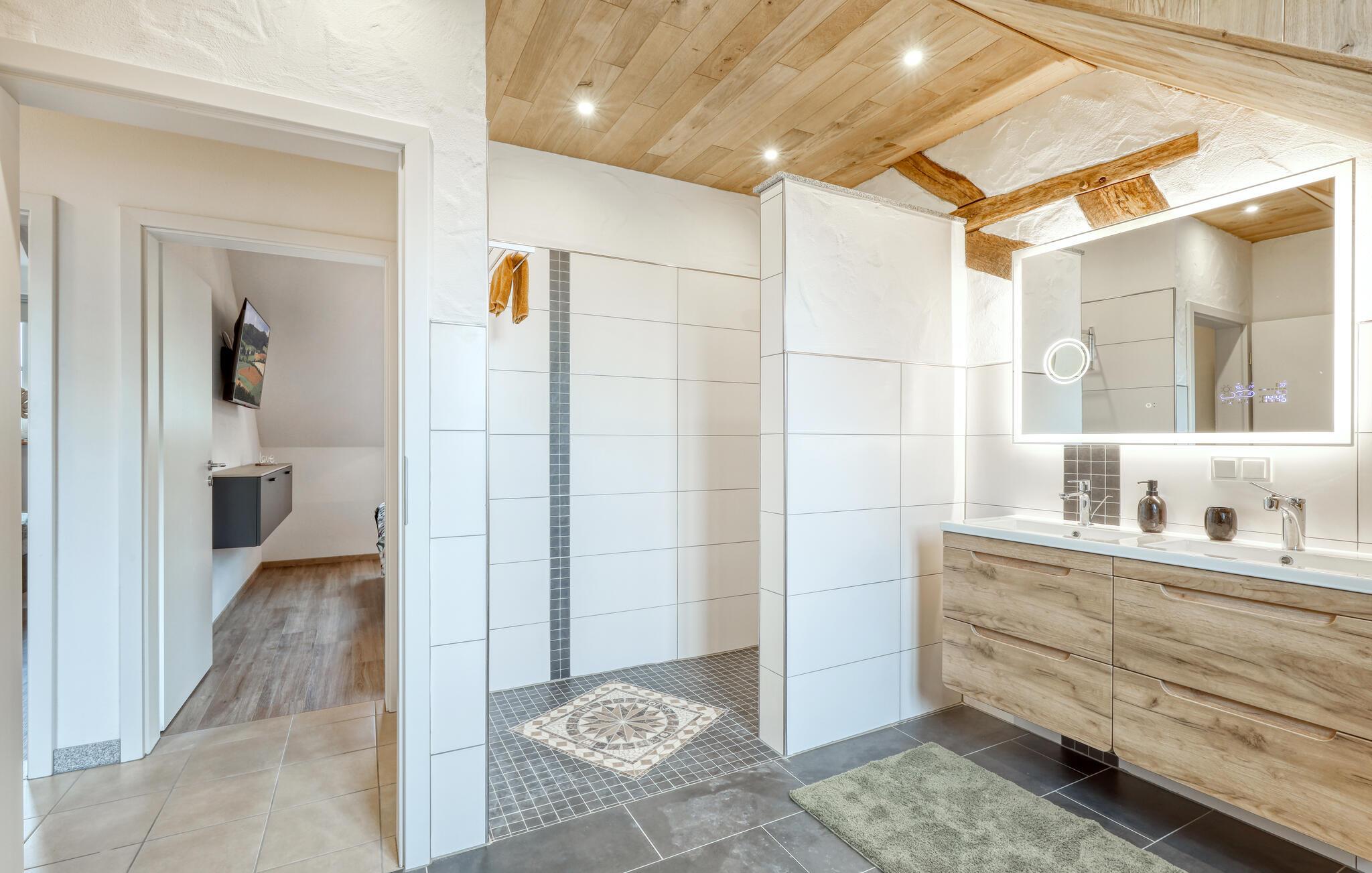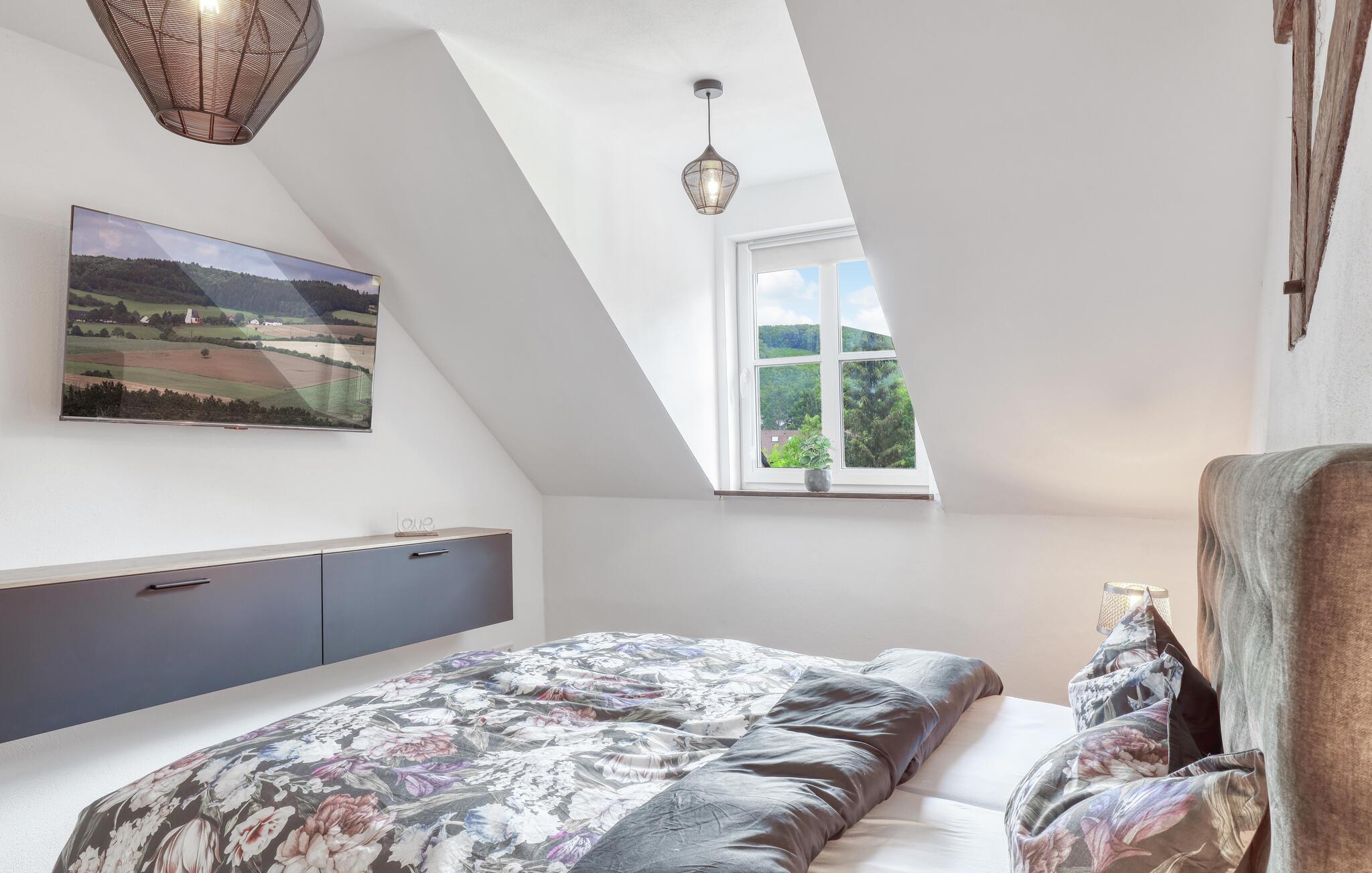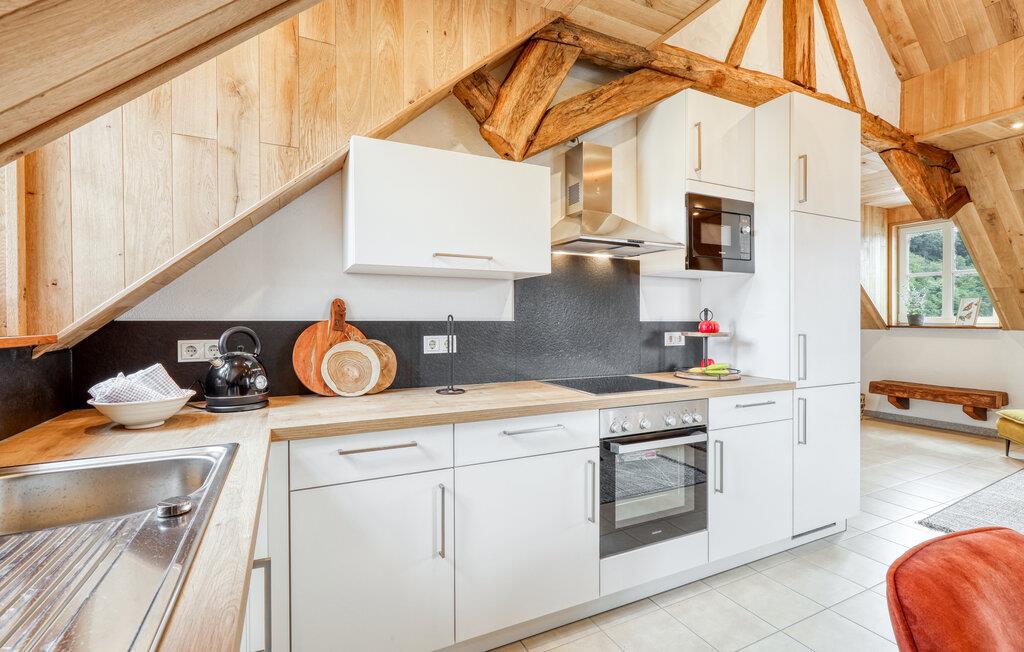 Fordyp deg i sjarmen til denne praktfulle ferieleiligheten med sitt imponerende tretak og takbjelker. I Irrhausen, midt i Eifel-landskapet, tilbyr dette overnattingsstedet komfort og stil. Det smakfullt innredede interiøret skaper en koselig atmosfære der du umiddelbart vil føle deg hjemme.