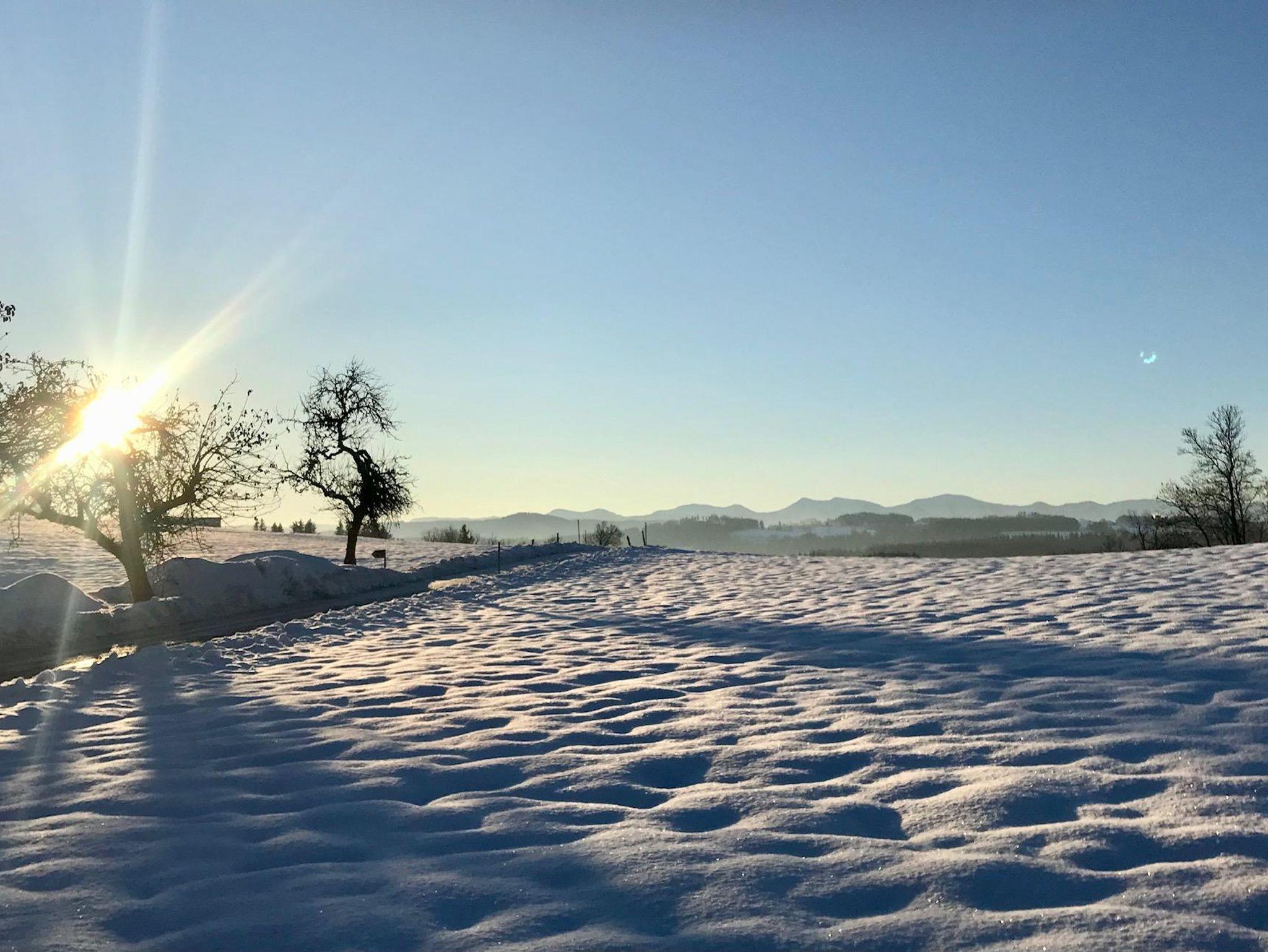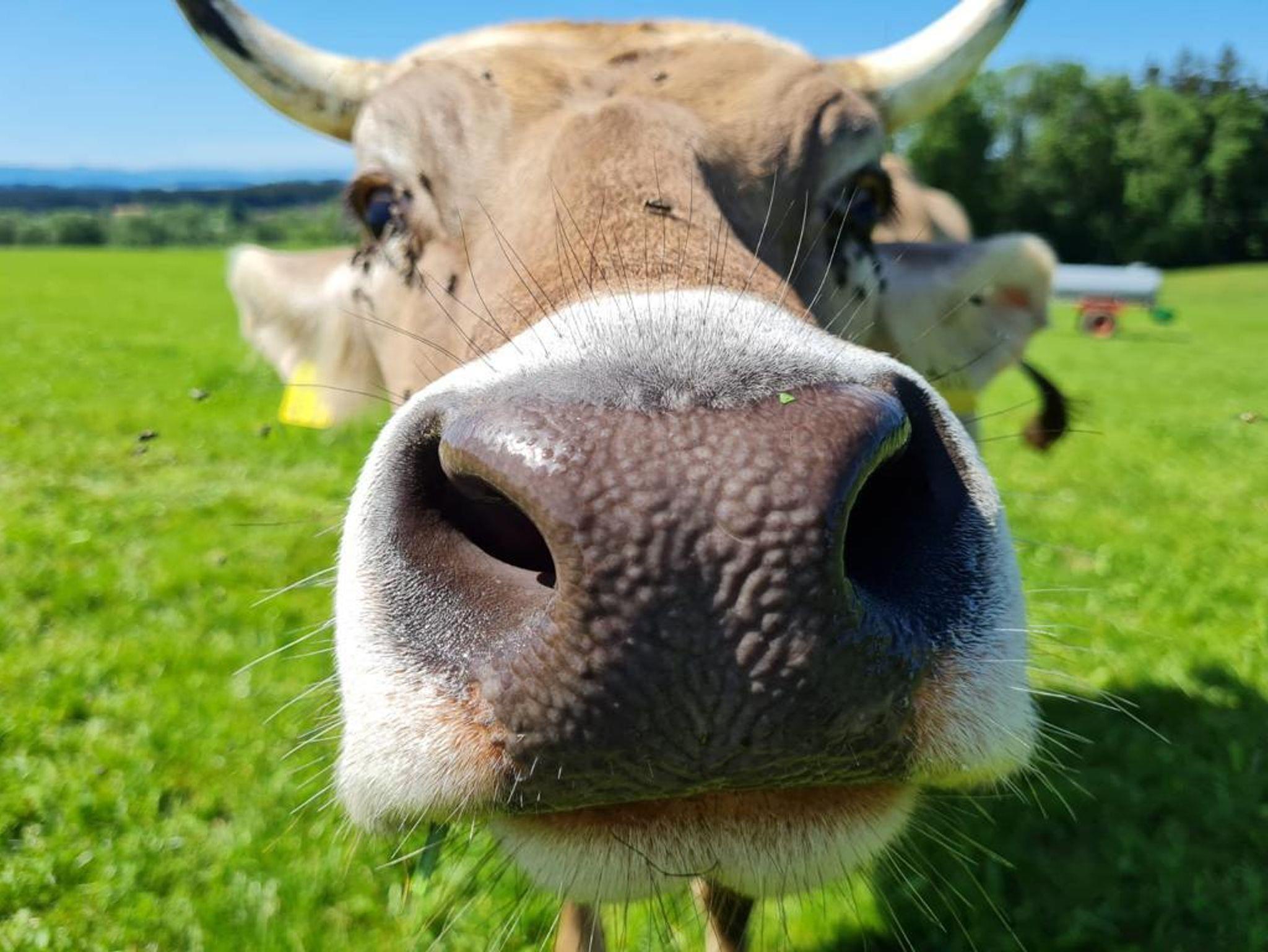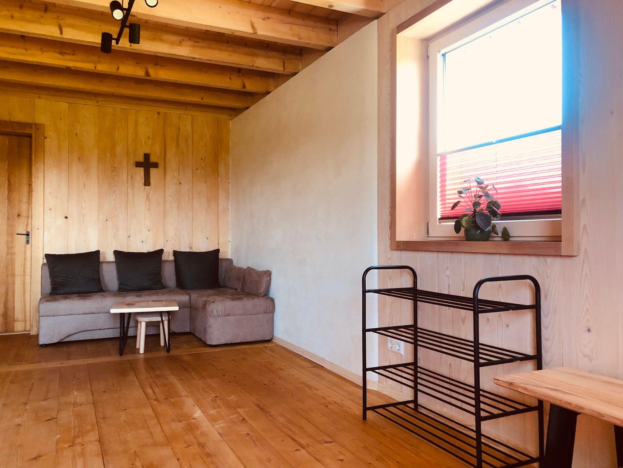 Großzügige 4-Zimmer Wohnung in ökologischem Massiv-Holzhaus auf Bioland-Heumilchbetrieb, idyllische und ruhige Alleinlage umgeben von wunderschöner Natur mit Blick auf die Alpen.
