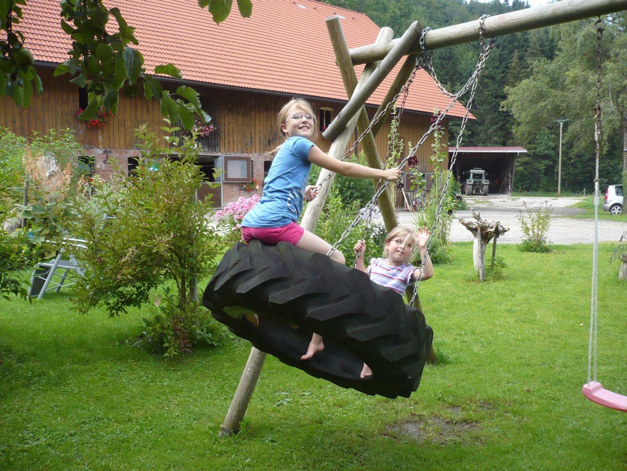 Unser gepflegter Biobauernhof mit Milchkühen und vielen Streicheltieren liegt in reizvoller Umgebung im Allgäu. Qualifizierte ansprechende 4-Sterne-Fewos (2 Schlafzimmer, 60 qm, eigener Eingang, Loggia, top Küchen, TV, DVD, Telefon, W-LAN) versprechen erholsamen Urlaub. Waschraum mit Waschmaschine und Trockner; Carport, Grillkamin, Skilift. Verlockende Außenanlage mit lauschigen Ecken unter alten Bäumen zum Lesen, Entspannen, Ruhen und Träumen. Attraktiver, großzügiger Spielplatz für Kleinkinder und Kids: Sandkasten und Spiezlzeug, Tretfahrzeuge, Schaukeln, Turnrecks, Kicker, Tischtennis, Riesentrampolin. Eindrucksvolles Bergwandergebiet im Landschaftsschutzgebiet Adelegg.