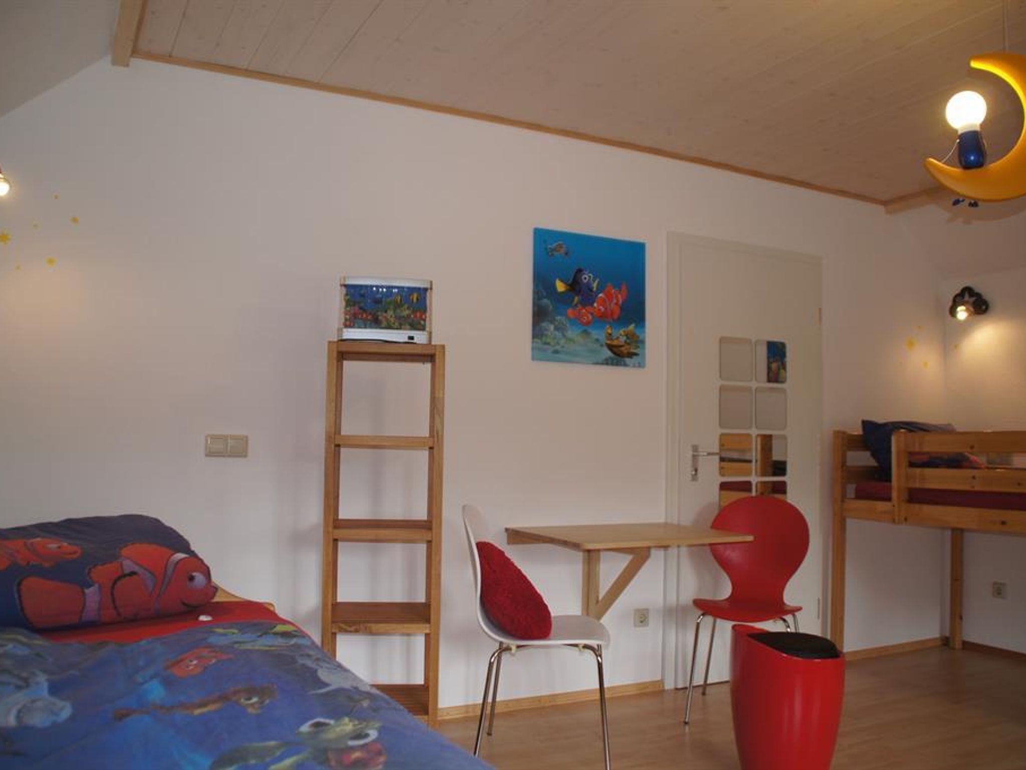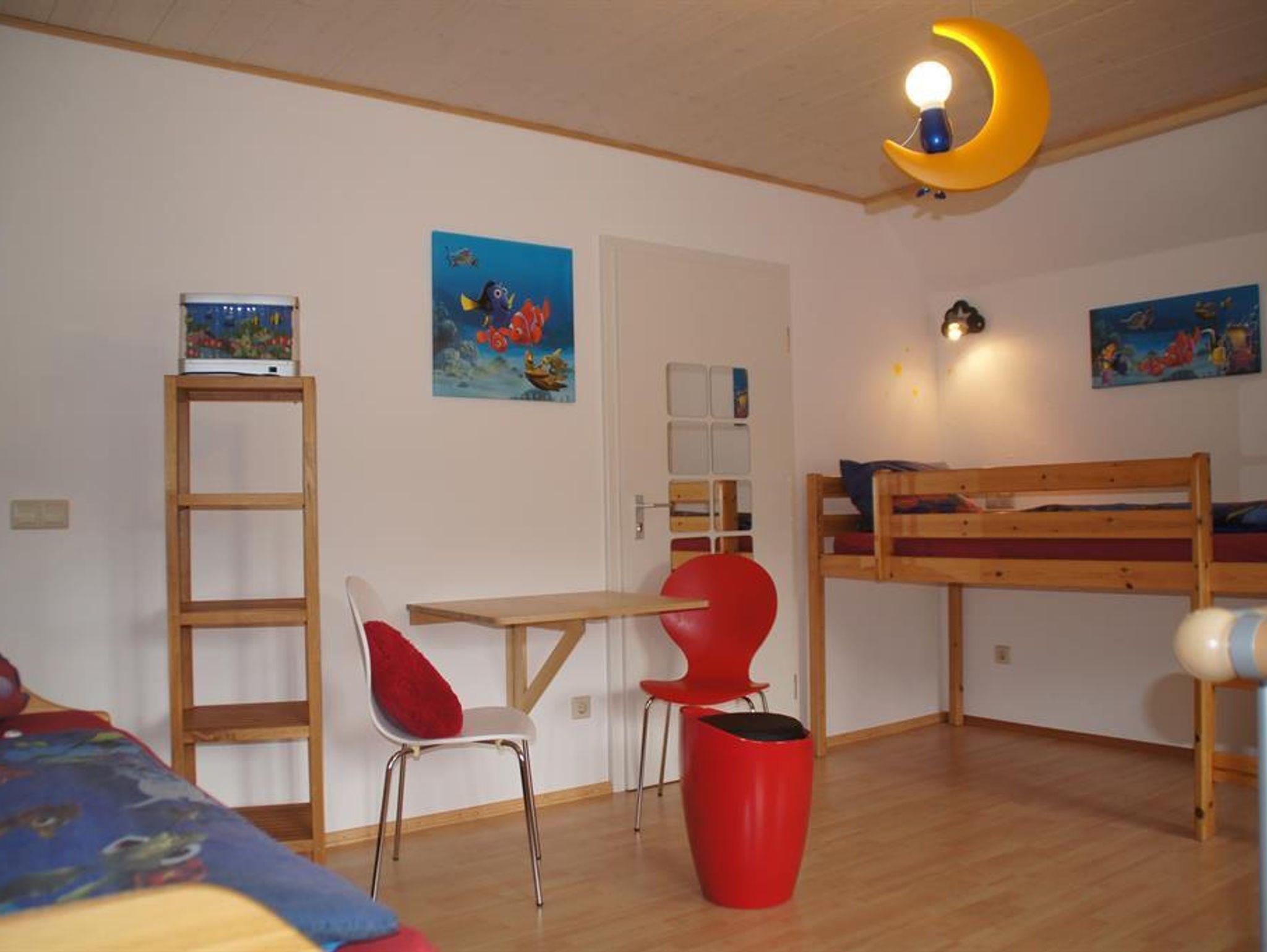 Qualifizierte, ansprechende Ferienwohnung mit 2 Schlafzimmern und insgesamt 8 Betten, Kinderzimmer ist Maisonettezimmer, groß und hell. Bestens ausgestattete Wohnküche, viel Stauraum, Spülmaschine, Backofen, Kühlschrank mit Gefrierfach, alle Kleingeräte, Mikro, W-LAN, Festnetztelefon, HD-Flachbild und DVD (auch im Kinderzimmer); Bad mit Stauraum, auf Wunsch Reisebett und Hochstuhl, Loggia mit Sitzgelegenheiten. Waschmaschine und Trockner auf der Etage.