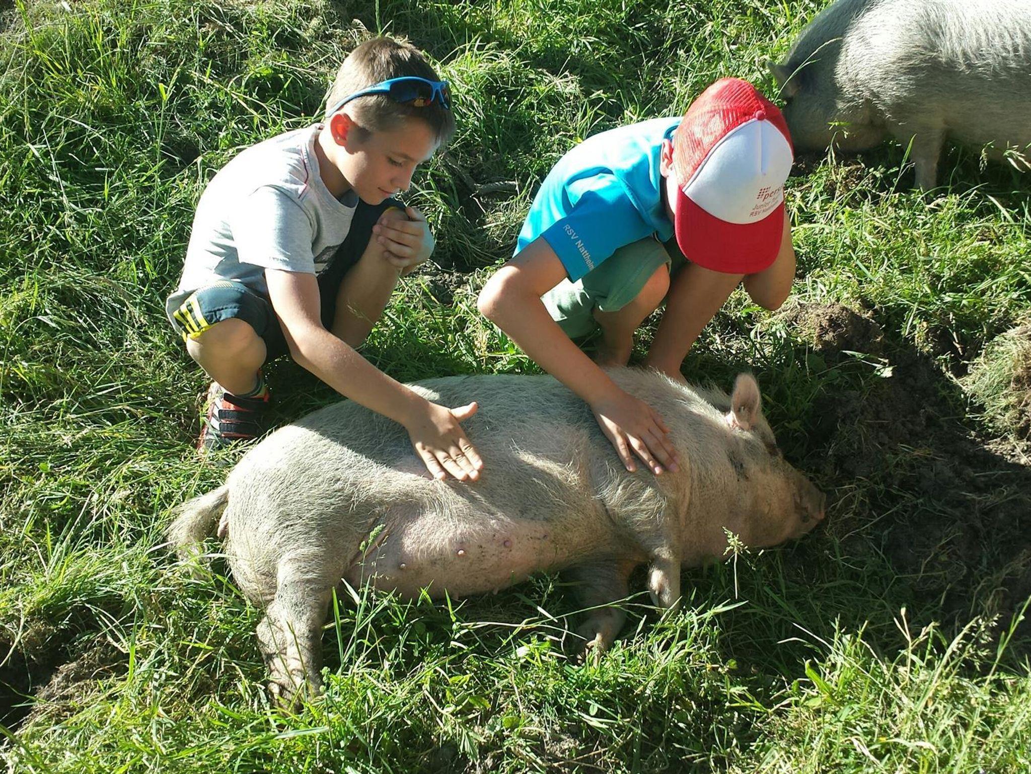 Unser gepflegter Biobauernhof mit Milchkühen und vielen Streicheltieren liegt in reizvoller Umgebung im Allgäu. Qualifizierte ansprechende 4-Sterne-Fewos (2 Schlafzimmer, 60 qm, eigener Eingang, Loggia, top Küchen, TV, DVD, Telefon, W-LAN) versprechen erholsamen Urlaub. Waschraum mit Waschmaschine und Trockner; Carport, Grillkamin, Skilift. Verlockende Außenanlage mit lauschigen Ecken unter alten Bäumen zum Lesen, Entspannen, Ruhen und Träumen. Attraktiver, großzügiger Spielplatz für Kleinkinder und Kids: Sandkasten und Spiezlzeug, Tretfahrzeuge, Schaukeln, Turnrecks, Kicker, Tischtennis, Riesentrampolin. Eindrucksvolles Bergwandergebiet im Landschaftsschutzgebiet Adelegg.