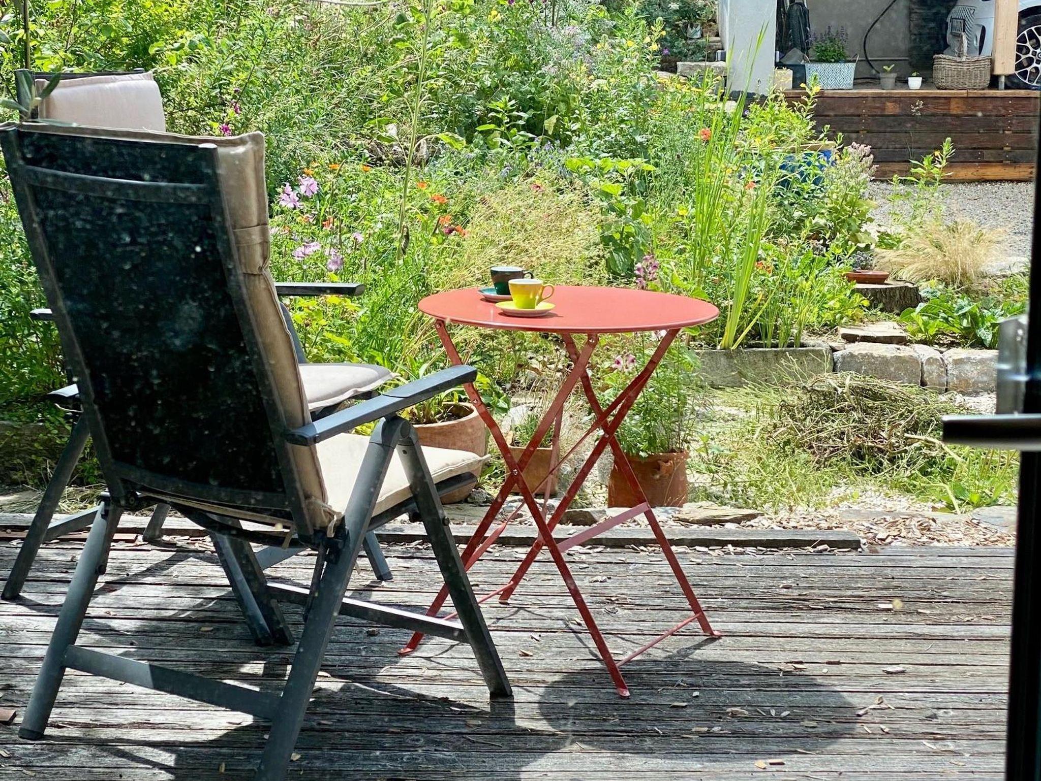 Genießen Sie auf der Süd-Terrasse Ihren Kaffee in der Sonne oder sitzen Sie im Hochsommer unter einem Baum im Schatten. Starten Sie zu Wanderungen direkt vor der Haustür oder entdecken Sie die romantischen Dörfer und Sehenswürdigkeiten der Region.