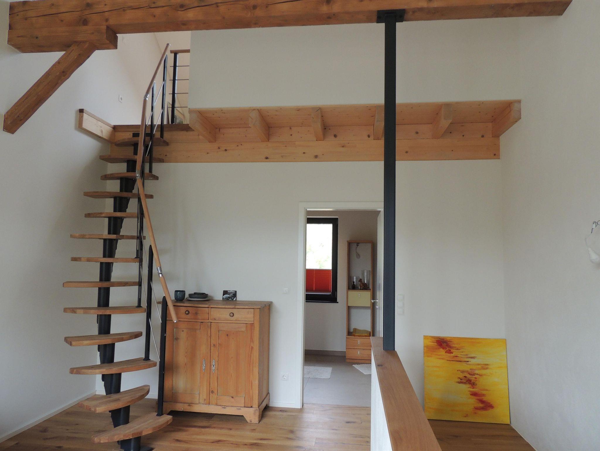 Durch die Raumspartreppe zum Schlafbereich ist in diesem Haus nur das Schlafsofa leicht zu erreichen.
