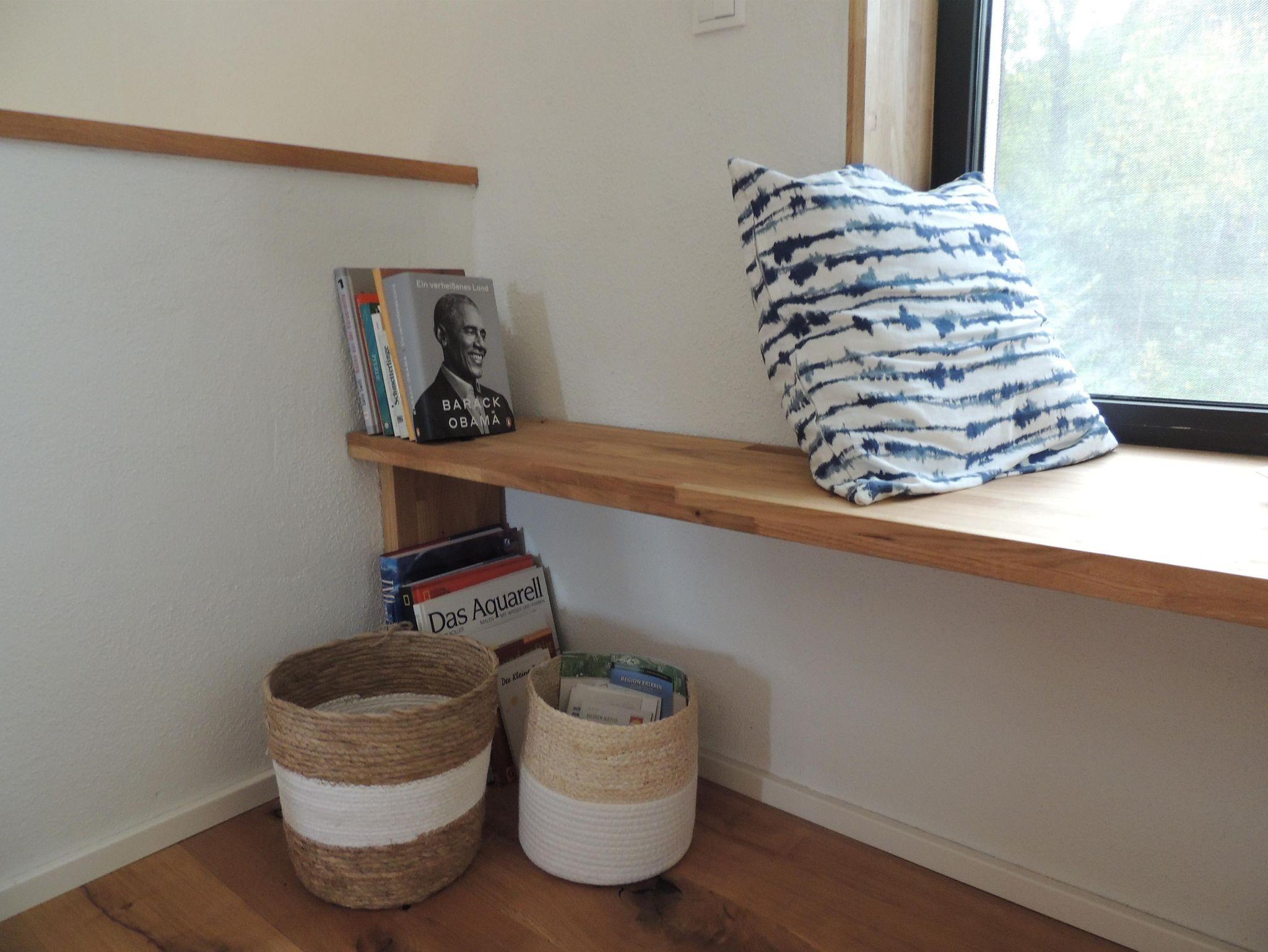 Der kleine Maisonette-Bereich ist über eine Raumspartreppe zu erreichen. Er bietet Raum für ein voll funktionsfähiges Bett (2,00 m x 1,40 m Breite), aus dem sich beim Blick durch das direkt darüber liegende, großzügig geschnittene Dachfenster beim Einschlafen wunderbar die Sterne zählen lassen.