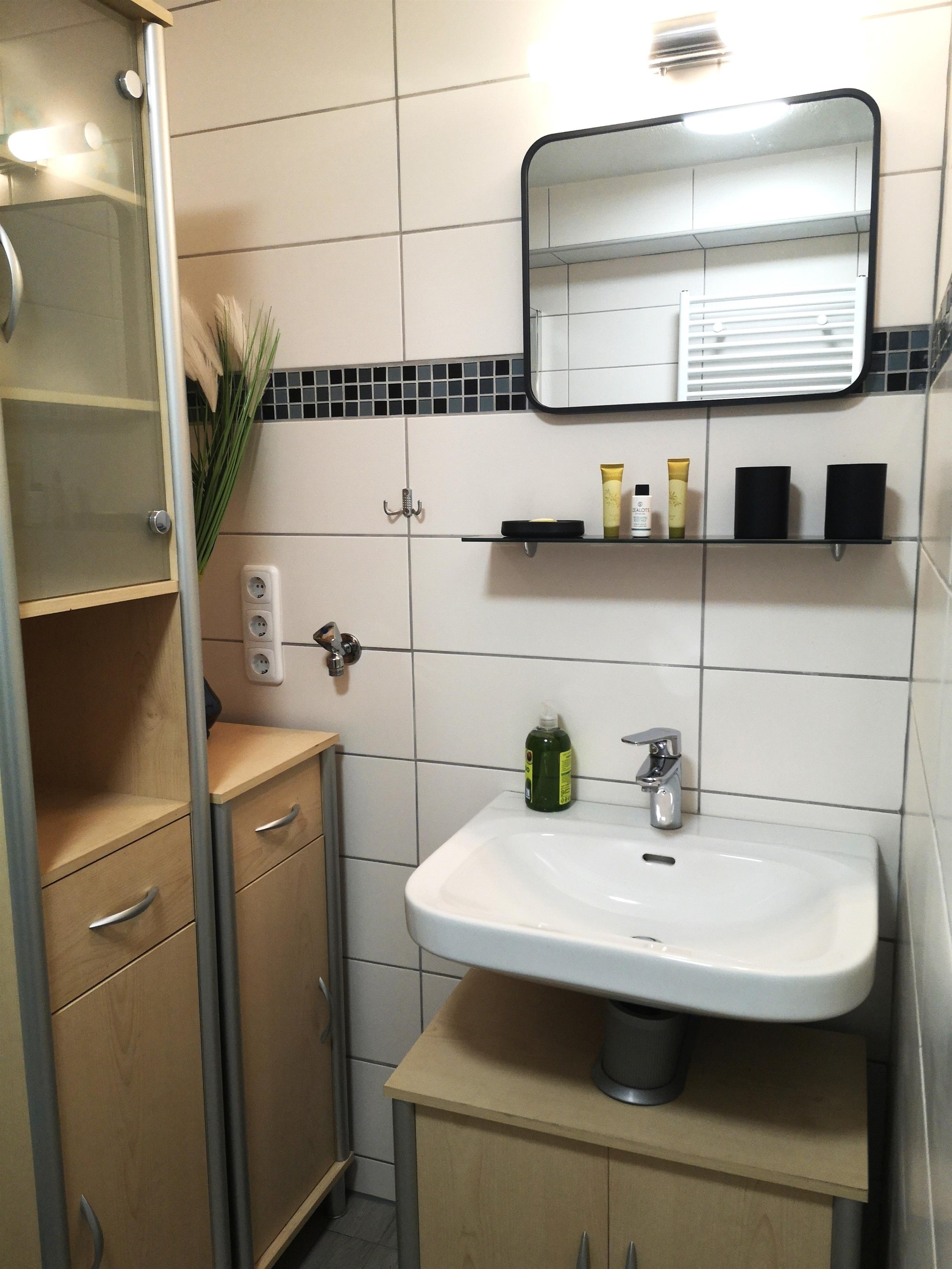 Gemeinsamer Waschraum mit Waschmaschine (Tabs vorhanden), eigener Ständer zum Trocknen der Wäsche