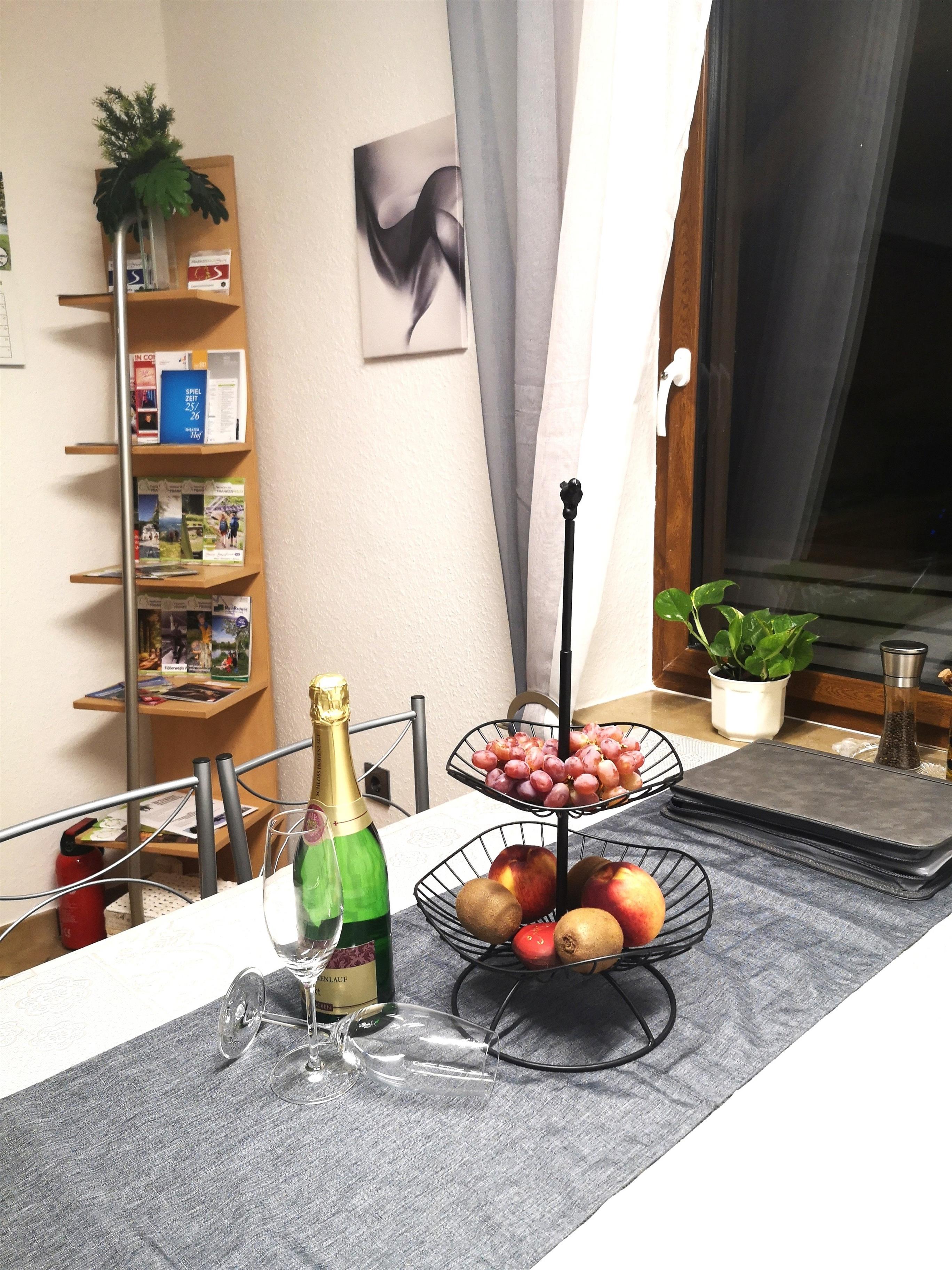Begrüßungsgetränk, Obst + eine Flasche Wasser