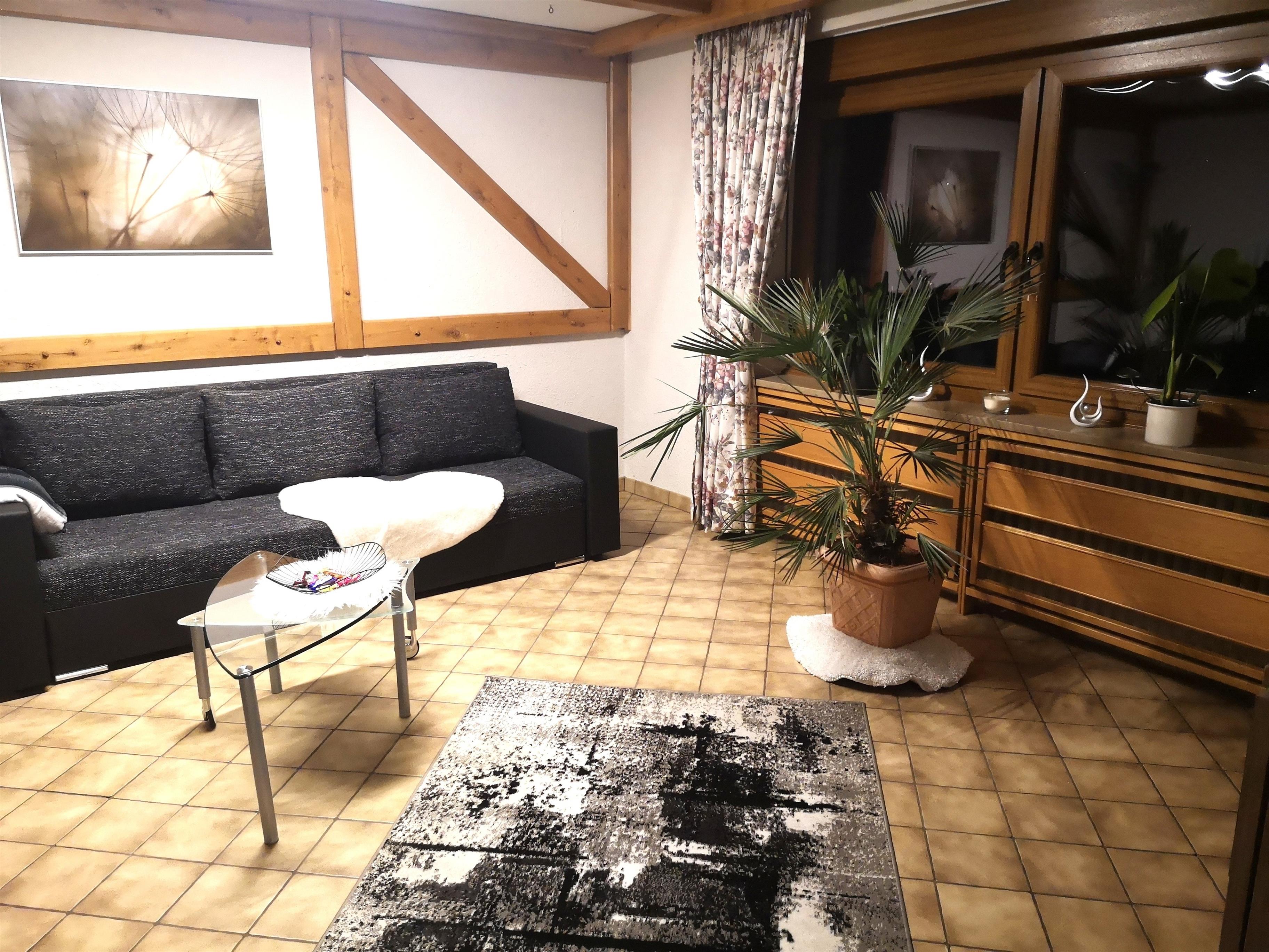 Wohnzimmer mit 2 Schlafcouches (140 × 200 cm) ( somit sind 2 Einzelbetten oder ein Doppelbett im Wohnzimmer möglich)