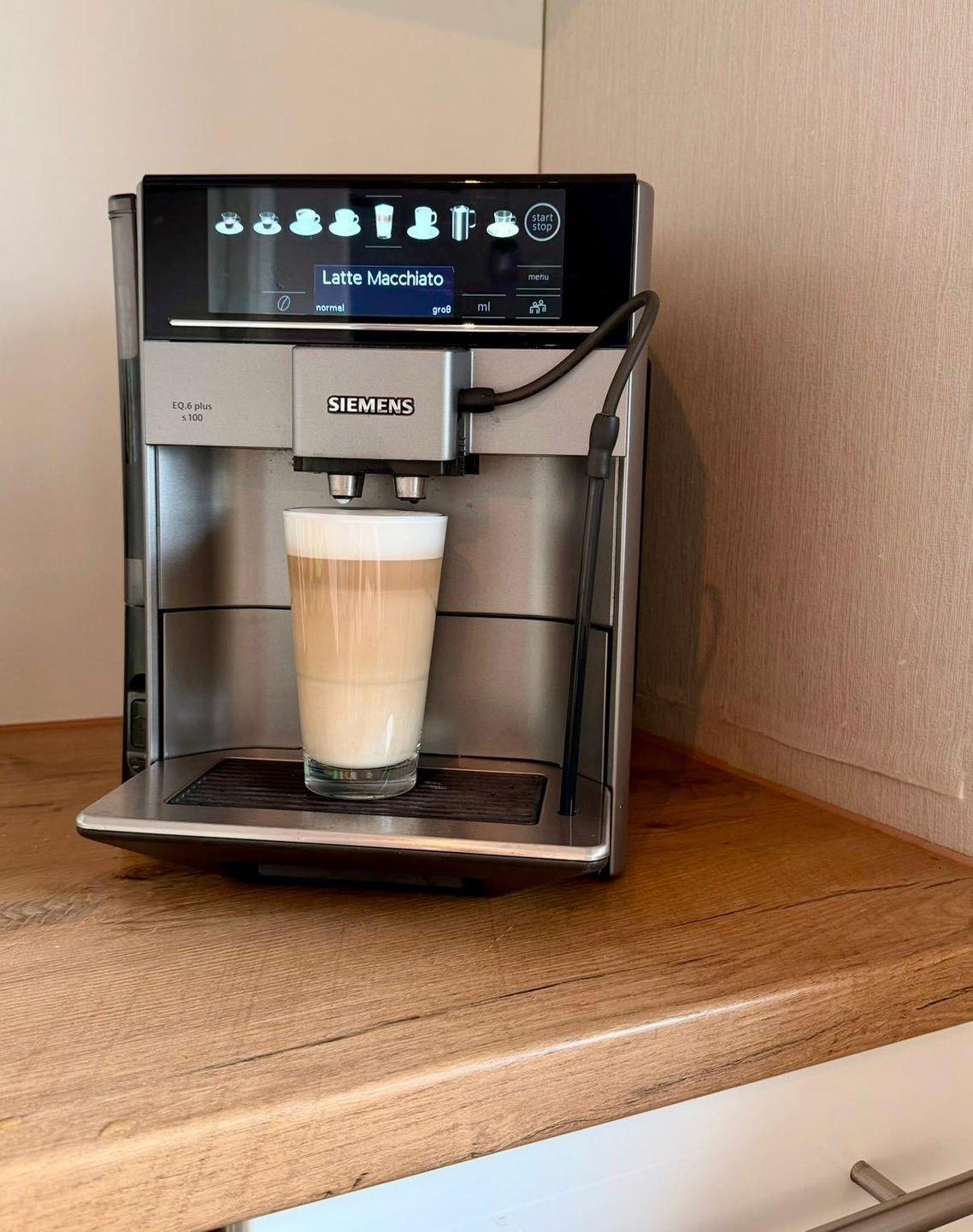 Die Küche ist komplett ausgestattet mit einem Kühlschrank mit Gefrierfach, Backofen und Ceranfeld, Geschirrspülmaschine sowie Kaffeemaschine, Toaster und Wasserkocher.