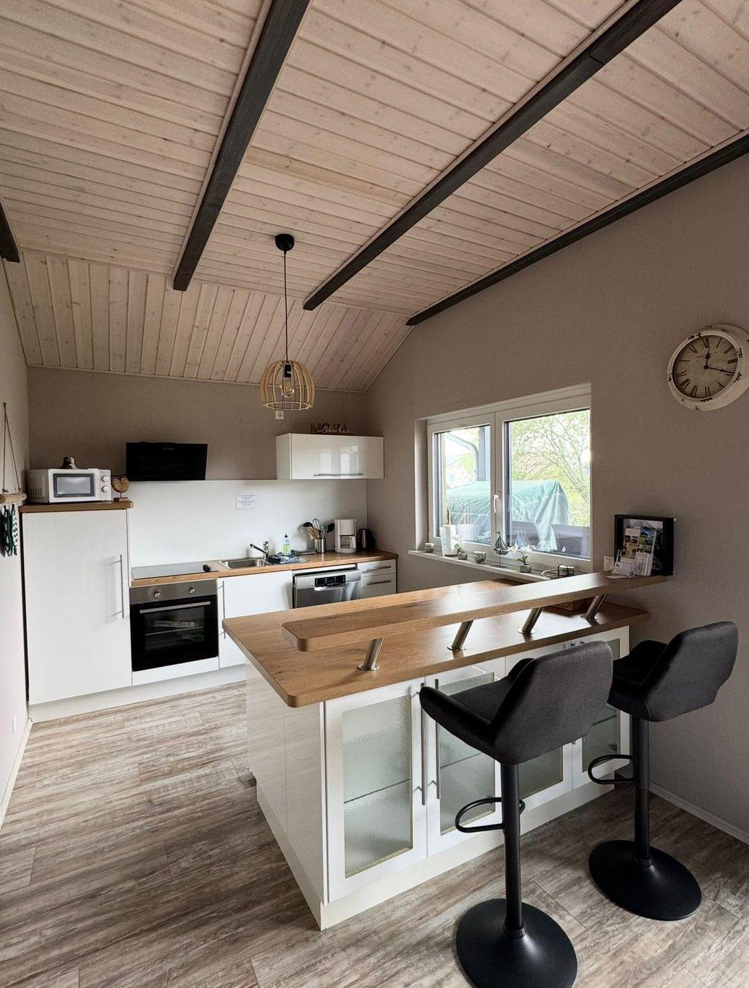 Dieser gemütliche Holzrahmenbau mit hohen Decken und einem großzügigen, offenen Wohn-Essbereich bietet auf ca. 70 m² Wohnfläche ausreichend Platz für 4-5 Personen.