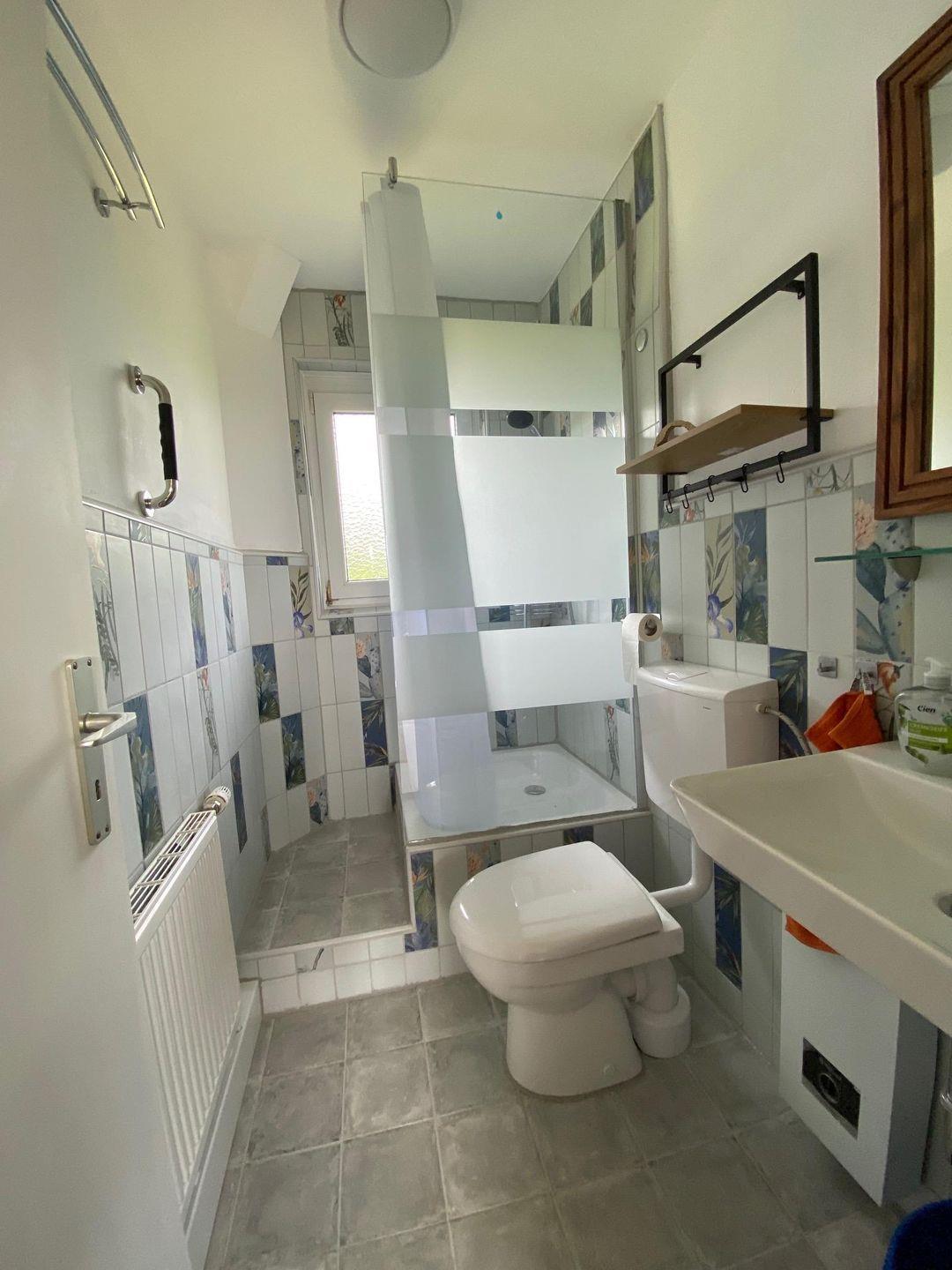 Wir bitten Sie, die Zugänglichkeit des Bettes (schmaler Raum) und der Duschtasse (Stufe/schmaler Durchgang) bei Ihrer Planung zu berücksichtigen, siehe Bilder.