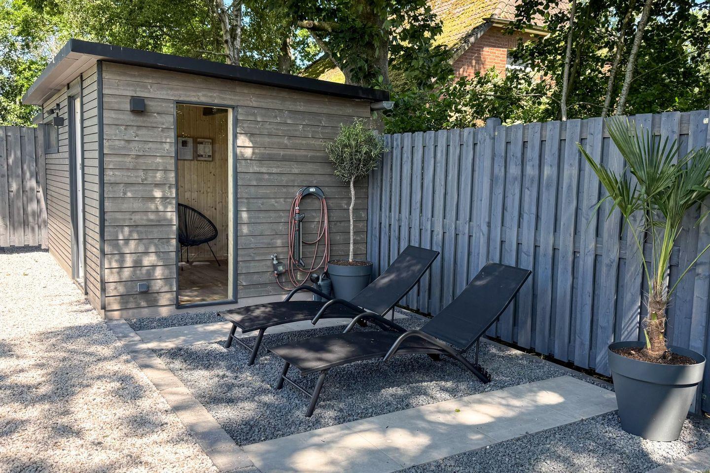Ein besonderes Highlight ist das hochwertige, separate Sauna-Haus mit Vorraum und Dusche – bereits im Mietpreis inklusive. Ideal, um nach einem aktiven Tag zu entspannen.