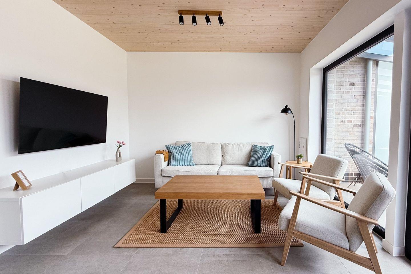 Das Haus verfügt über drei gemütliche Schlafzimmer, jeweils mit eigenem Smart-TV. Ein offener Wohn- und Essbereich mit großen Fenstern sorgt für viel Tageslicht und eine angenehme Wohlfühlatmosphäre. Zwei moderne Bäder mit ebenerdiger Dusche bieten höchsten Komfort.