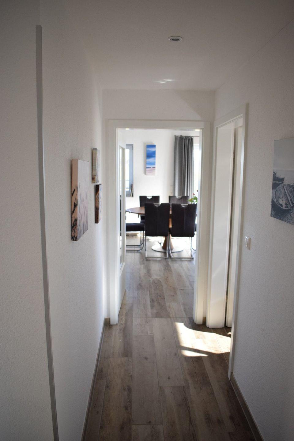 Wir bieten ausreichend Platz für 6 Personen in drei Schlafzimmern, die mit Massivholzmöbeln ausgestattet sind (ein Doppelbett, zwei Familienkojen) und eine große Wohnküche mit umfangreicher, neuwertiger Ausstattung (großer Kühlschrank mit Gefrierfach, Geschirrspüler, Kaffeemaschine, smoothie-Mixer, Toaster, Ceran-Kochfeld mit Backofen) und Esstisch mit 6 Plätzen, darüber hinaus eine gemütliche Sitzgruppe mit Kaminofen und schwenkbarem, großem Satelliten TV.