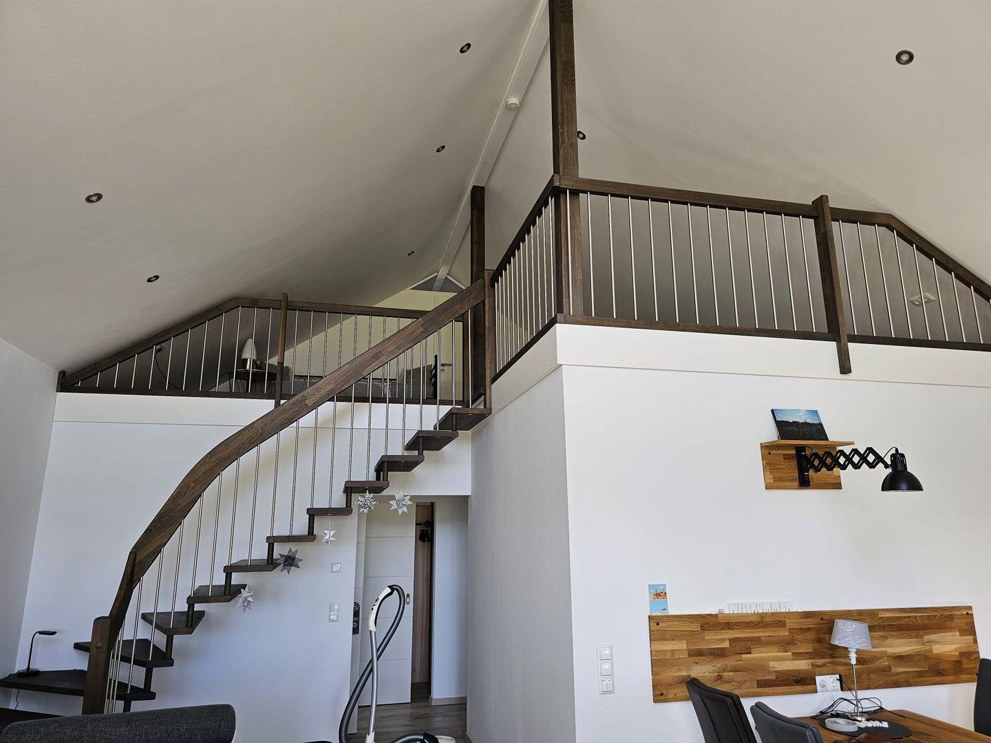 über eine Treppe im Wohnbereich gelangt man auch eine Empore als weiteren Rückzugsort.