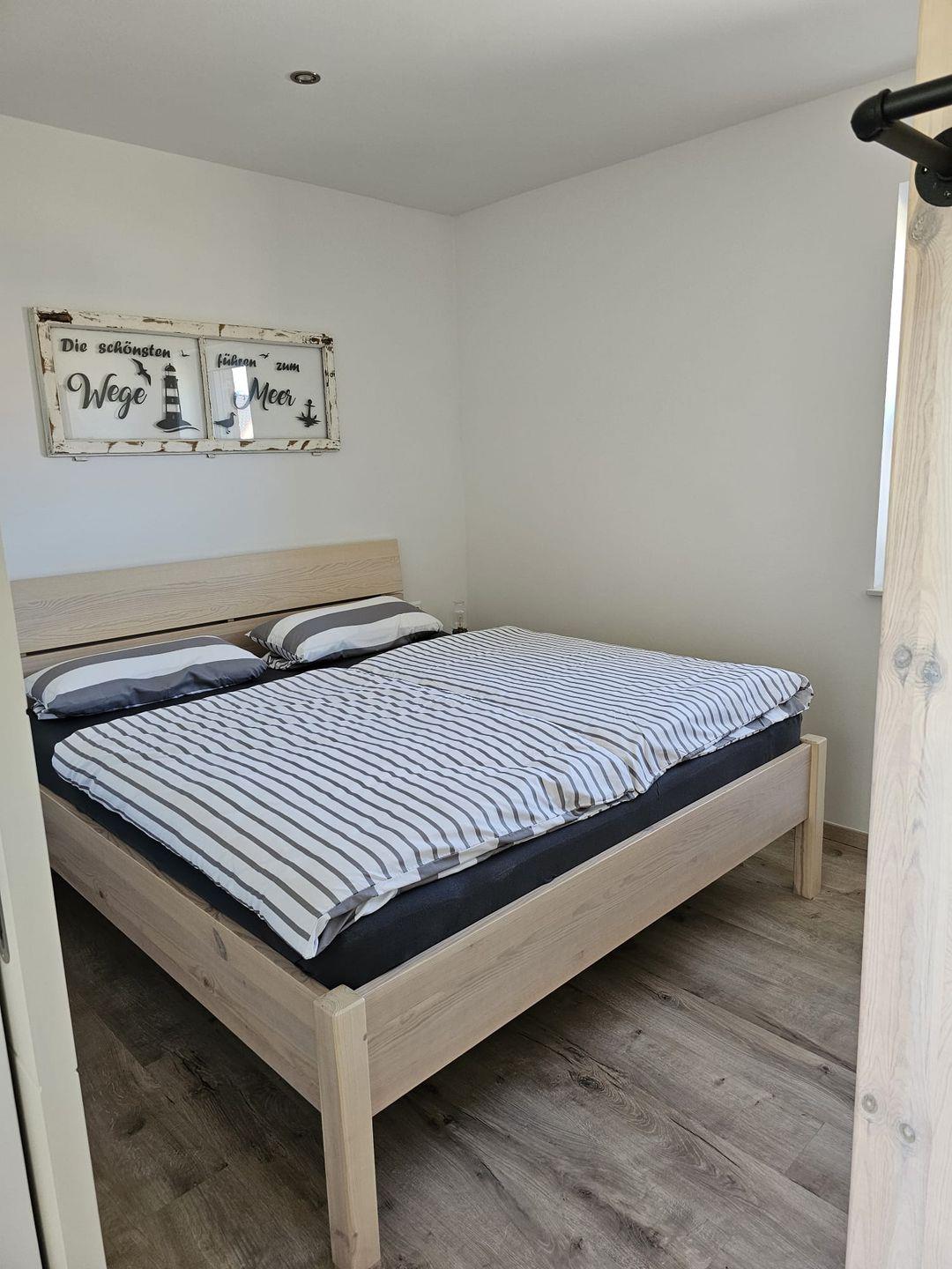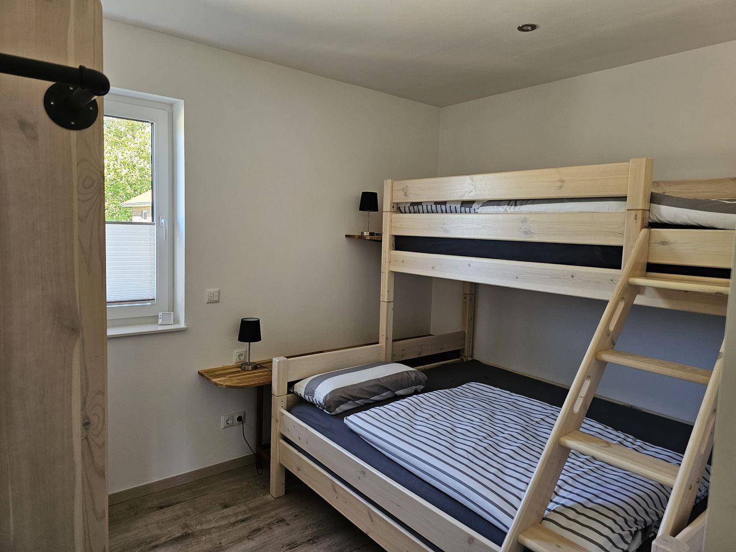 Das Haus verfügt über zwei ebenerdig erreichbare Schlafzimmer. Ein Schlafzimmer ist mit einem komfortablen Doppelbett ausgestattet. Das zweite Schlafzimmer verfügt über ein Etagenbett (oben 80 cm, unten 160 cm) und eignet sich ideal für Kinder oder weitere Mitreisende.