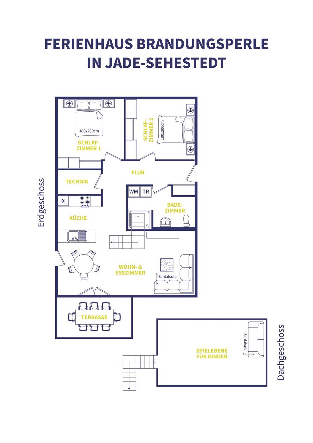 Unser neues Ferienhaus liegt unmittelbar hinterm Deich an der Nordsee und bietet bis zu 8 Personen (maximal 6 Erwachsene) ausreichend Platz.
