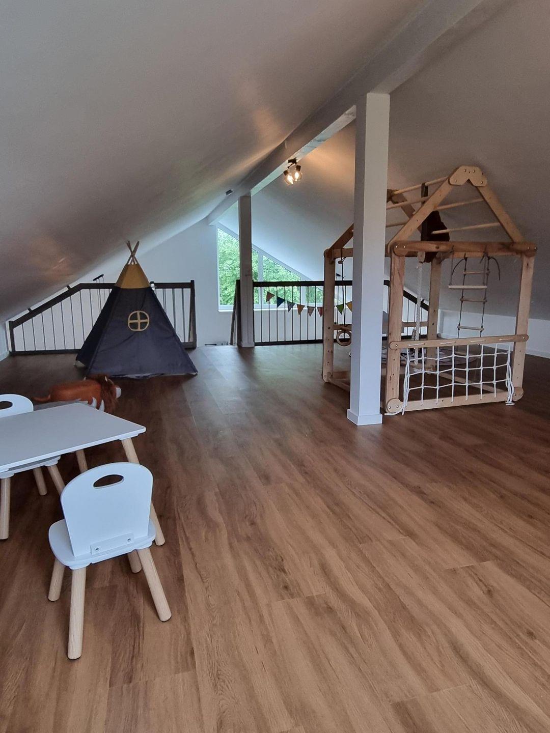Das Haus ist von A-Z kinderfreundlich ausgestattet. Es gibt eine eigene riesige Spielebene, wo die Kinder am liebsten den ganzen Tag verbringen möchten. Somit ist auch bei regnerischen Tagen der Urlaub gerettet, die Kinder werden es lieben.