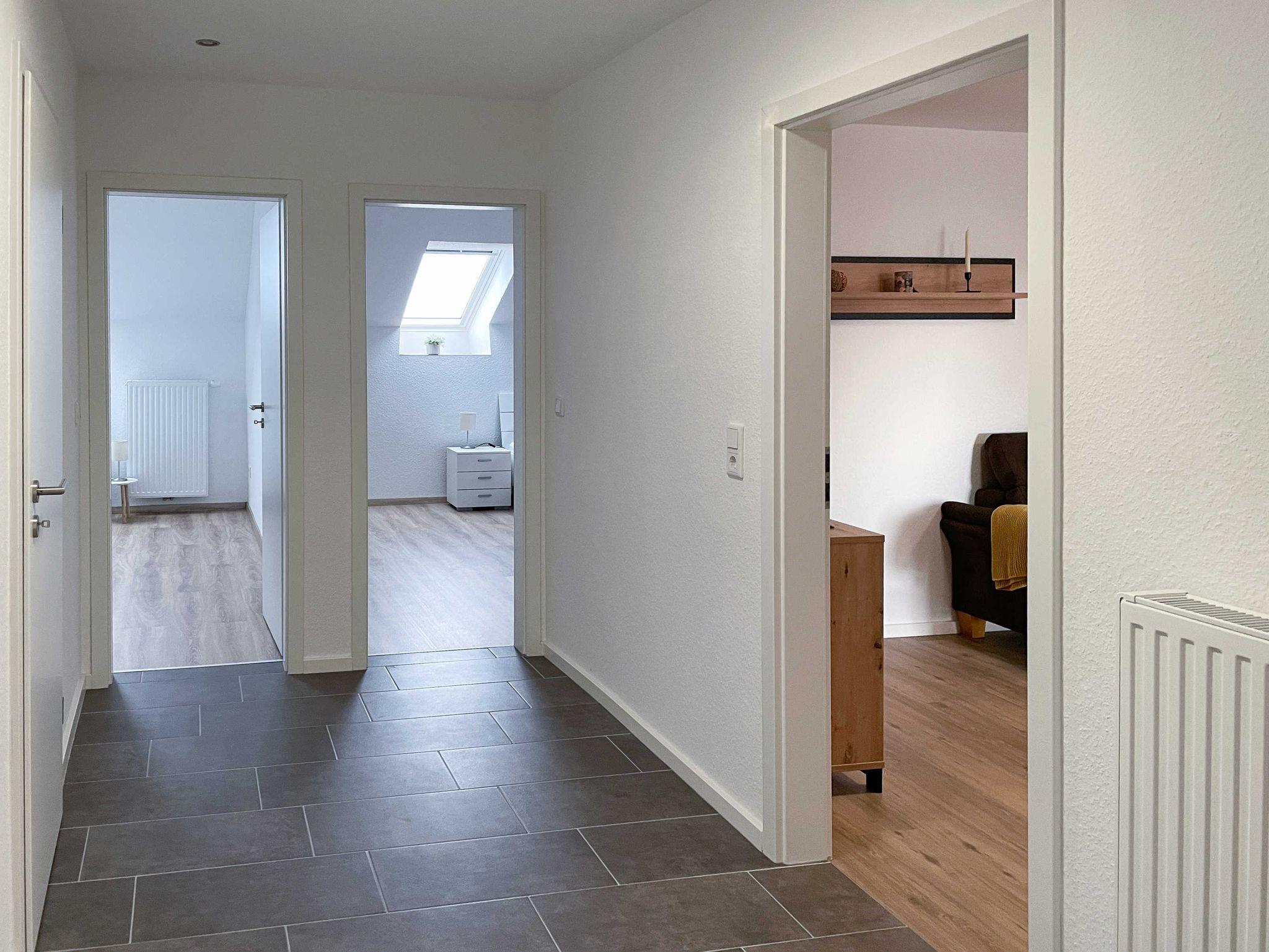 Unsere im Jahr 2020 sanierten Ferienwohnungen befinden sich etwa 200 Meter vom Ortseingang entfernt auf der linken Seite. Beide Wohnungen befinden sich im Obergeschoss.