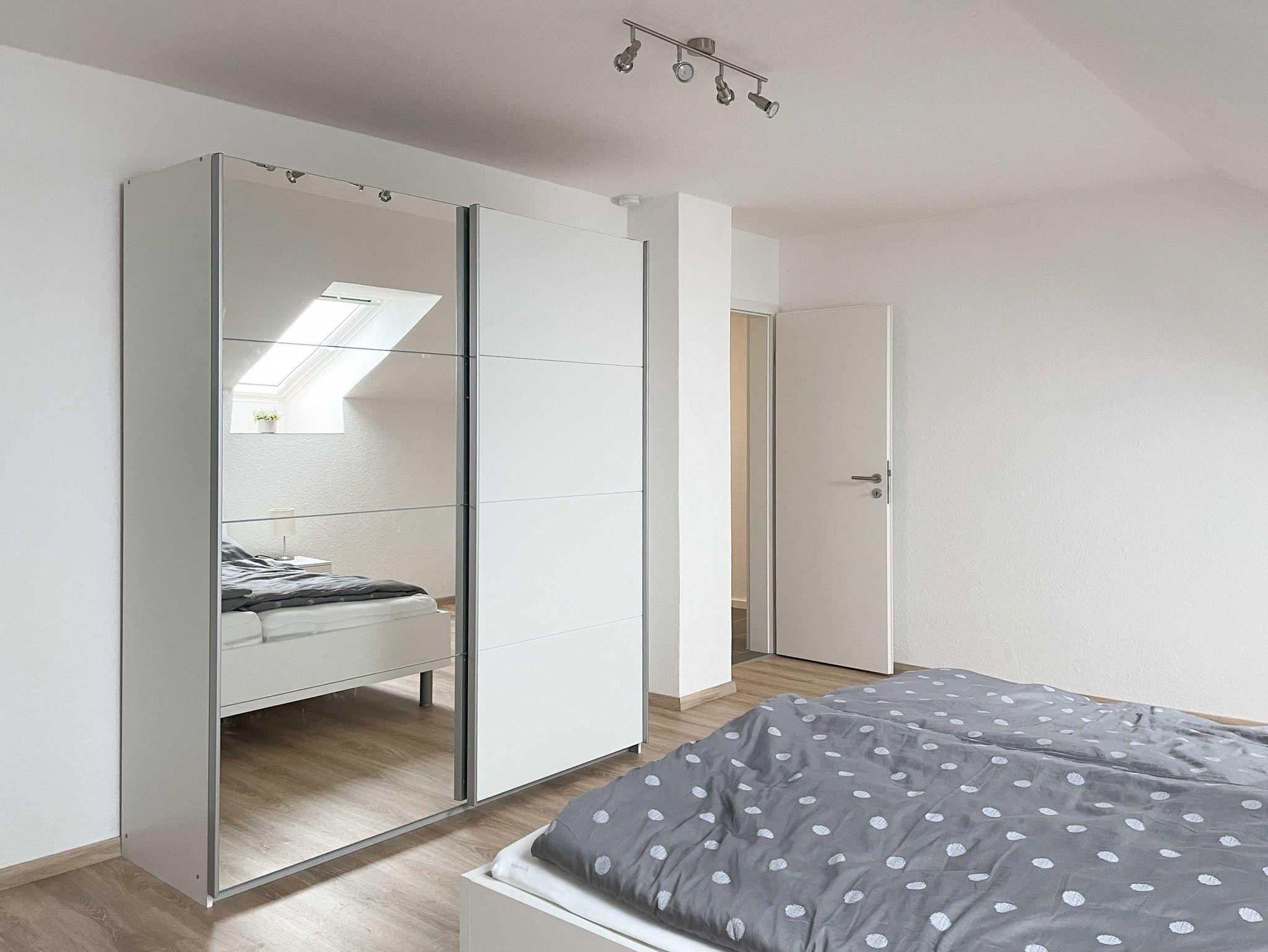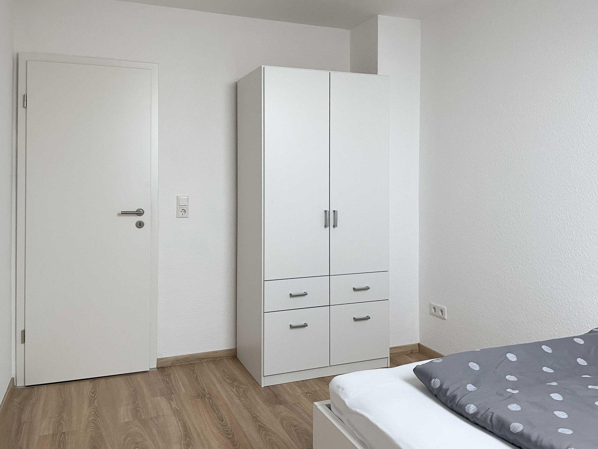 • Schlafzimmer mit Doppelbett und Kleiderschrank