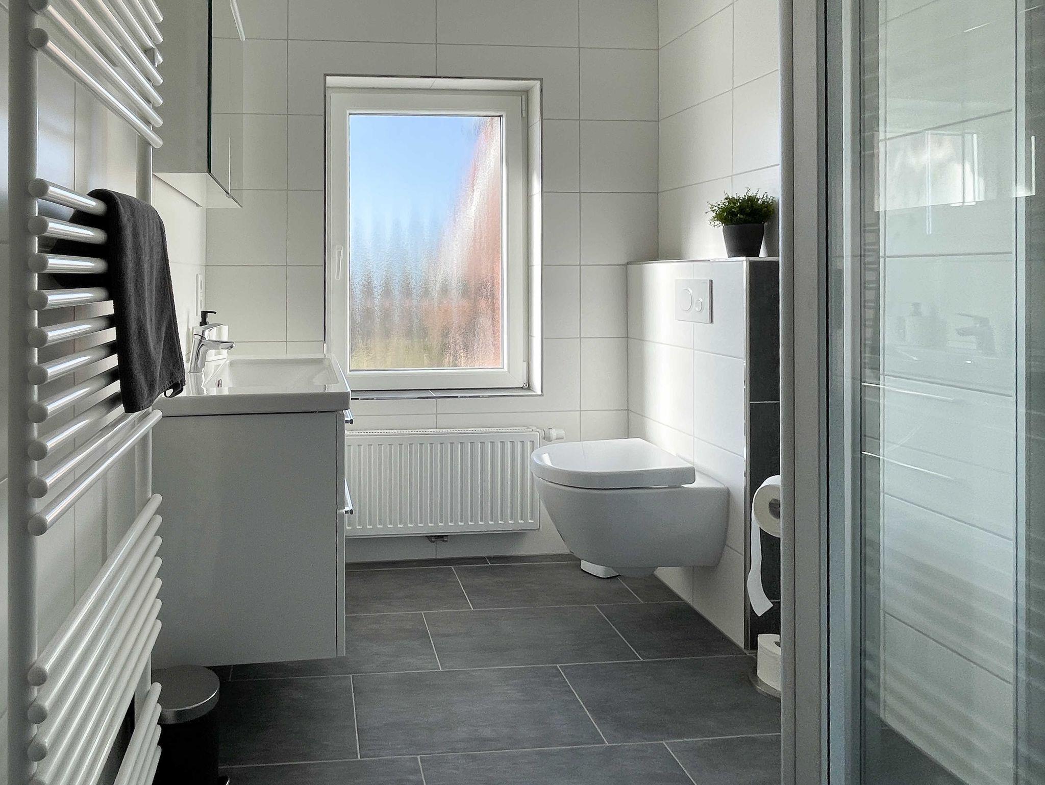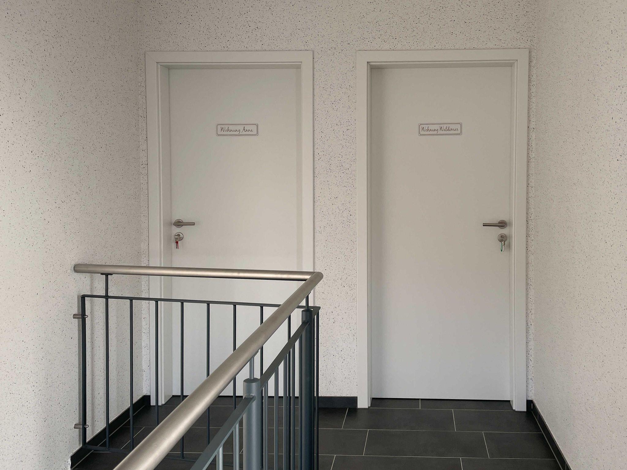 Der Eingang zu den Wohnungen befindet sich auf der rückwärtigen Seite des Hauses. Der Weg dorthin ist mit Bewegungsmeldern ausgestattet, sodass Sie auch im Dunkeln sicheren Fußes in die Wohnungen gelangen.