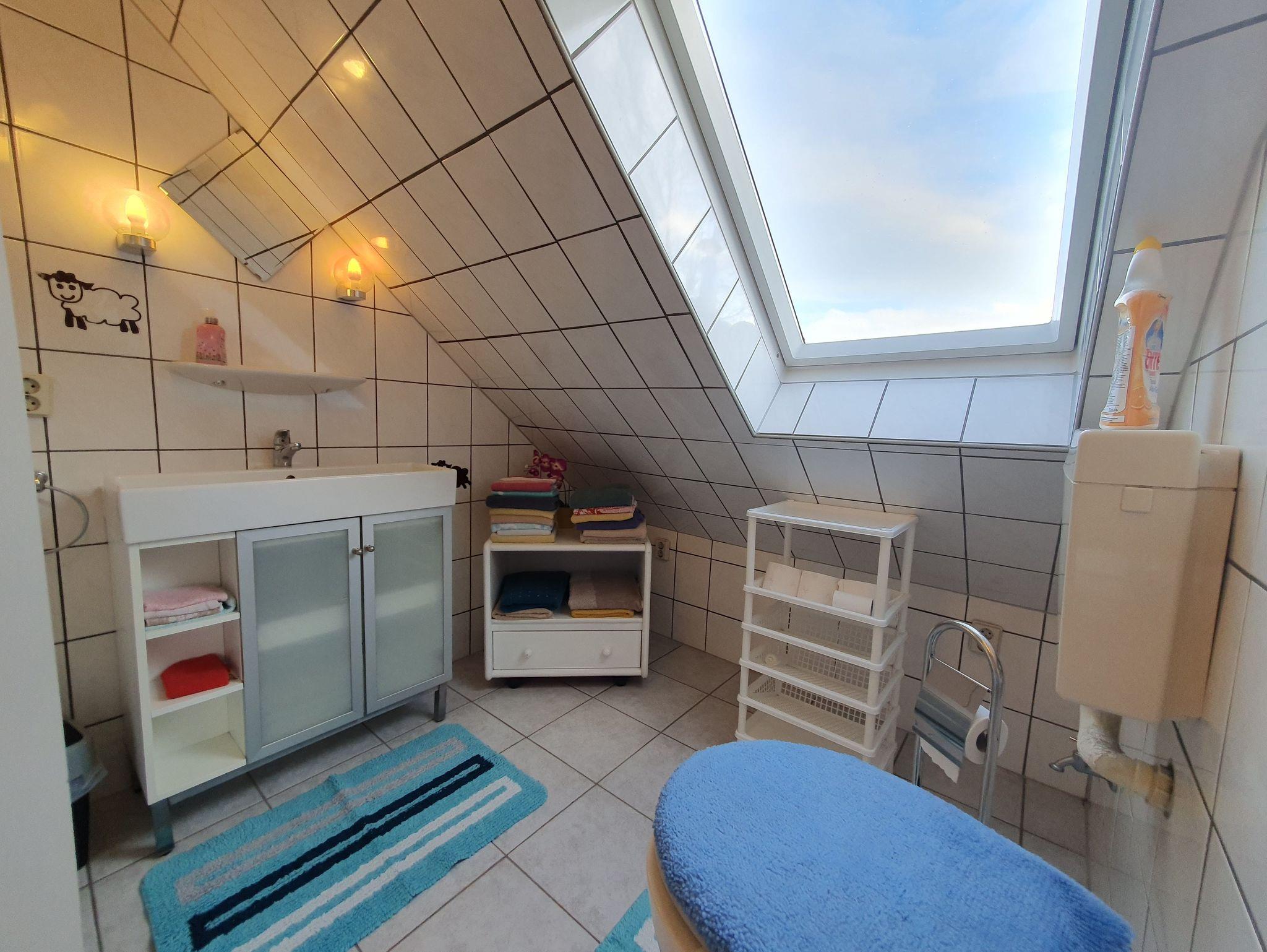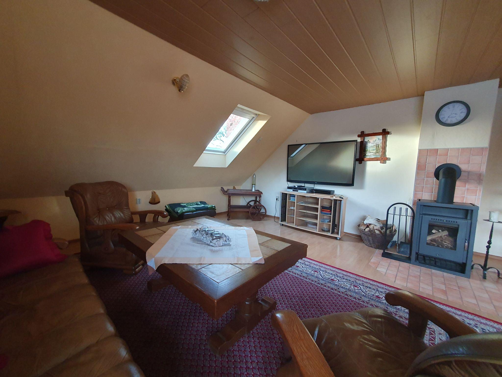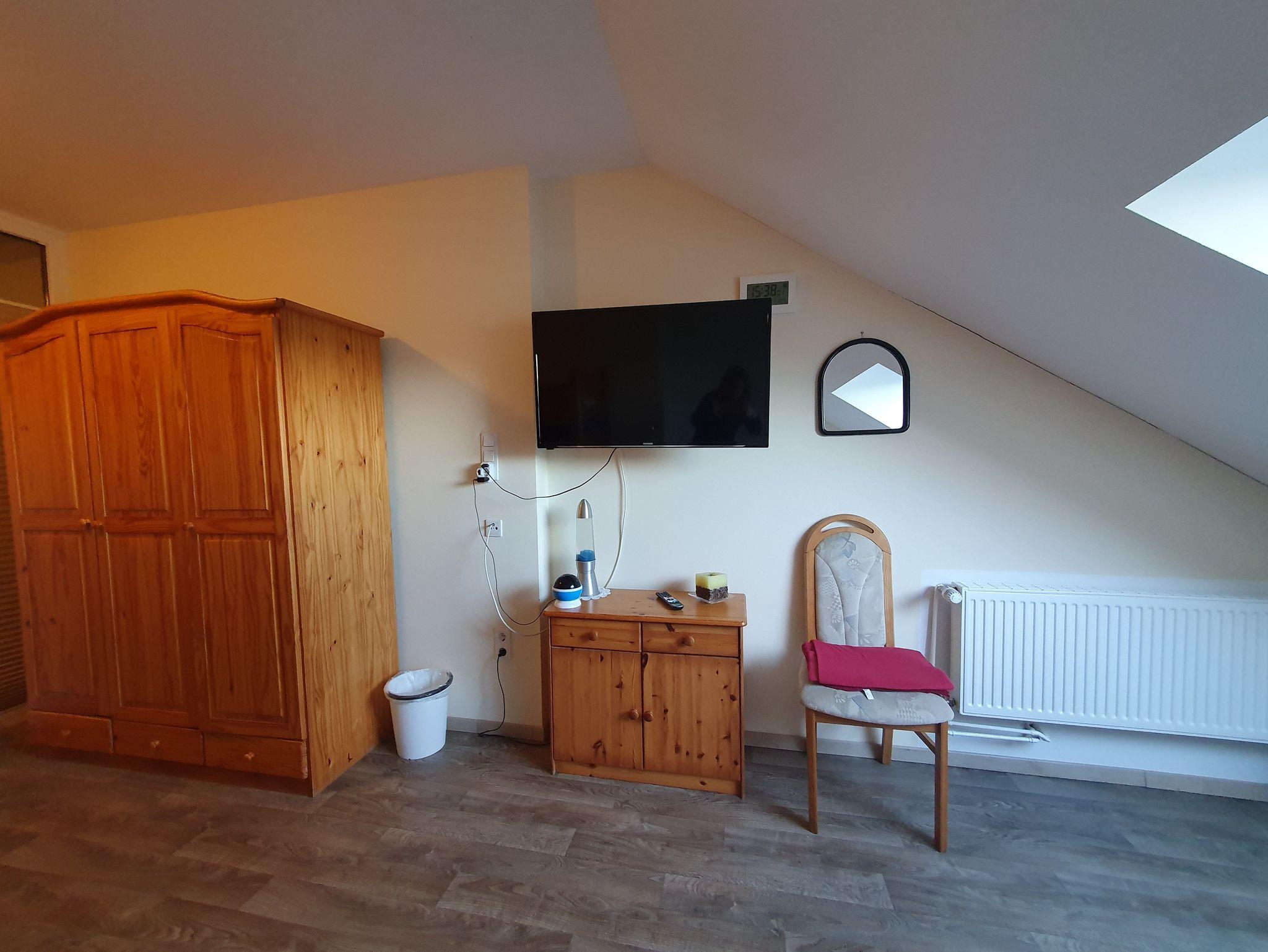 Separater Eingang, TV, DVD, kostenloses W-LAN, Bad mit Dusche und WC, große Küche mit Spülmaschine, Kühlschrank und Mikrowelle. Im Schlafzimmer gibt es eine Wickelkommode und ein Kinderbett. Es gibt ein Einzelzimmer mit einem Bett, ein Zimmer mit Doppelbett und einem Einzelbett, ein Zimmer mit Doppelbett, Kinderbett und einem Einzelbett und unterm Dach 3 aufgeteilte Schlafmöglichkeiten mit 3 Einzelbetten, 2 Einzelbetten und einem Einzelbett.