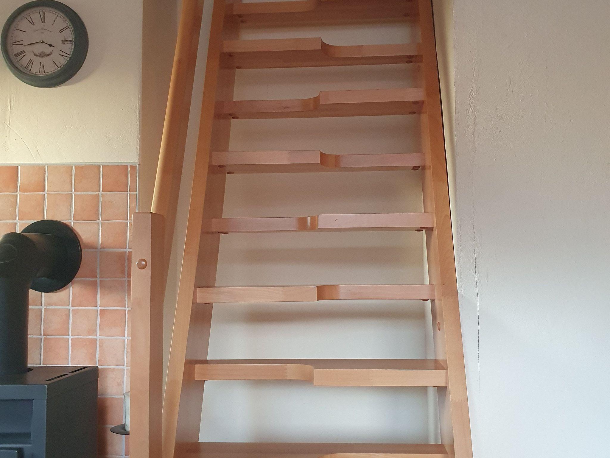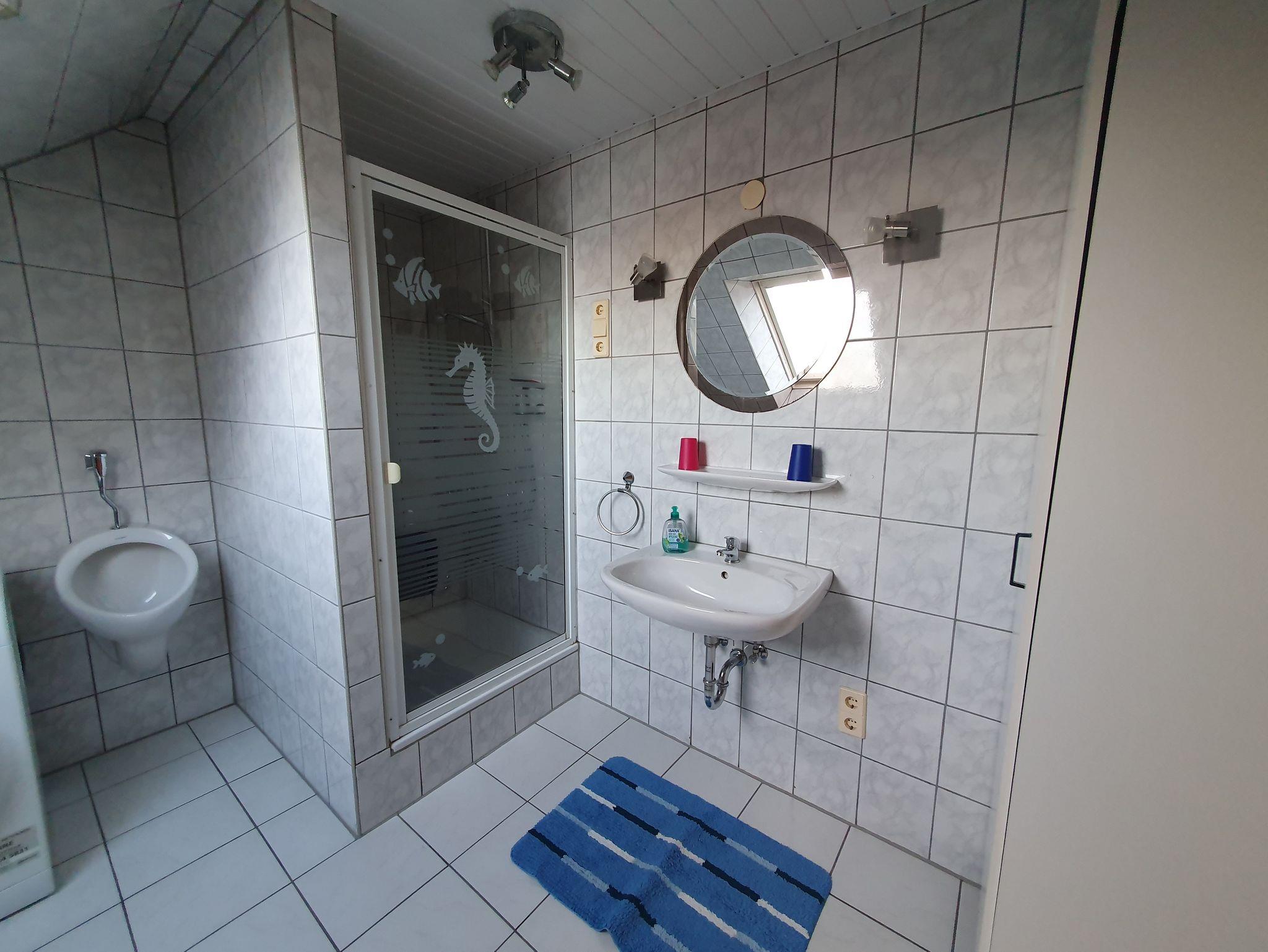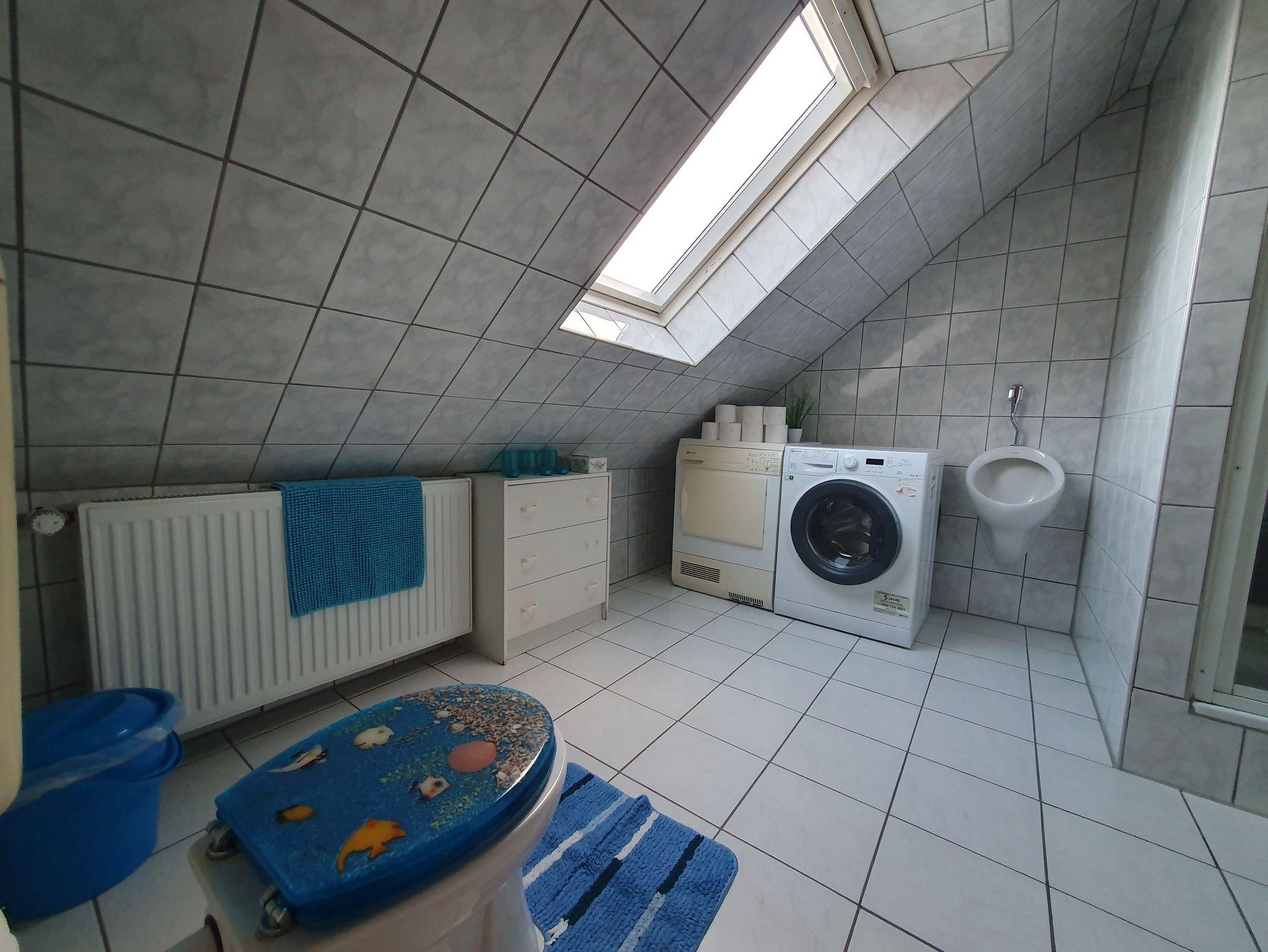 Separater Eingang, TV, DVD, kostenloses W-LAN, Bad mit Dusche und WC, große Küche mit Spülmaschine, Kühlschrank und Mikrowelle. Im Schlafzimmer gibt es eine Wickelkommode und ein Kinderbett. Es gibt ein Einzelzimmer mit einem Bett, ein Zimmer mit Doppelbett und einem Einzelbett, ein Zimmer mit Doppelbett, Kinderbett und einem Einzelbett und unterm Dach 3 aufgeteilte Schlafmöglichkeiten mit 3 Einzelbetten, 2 Einzelbetten und einem Einzelbett.