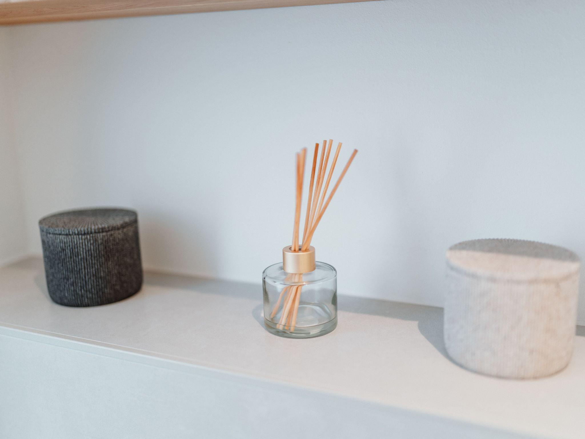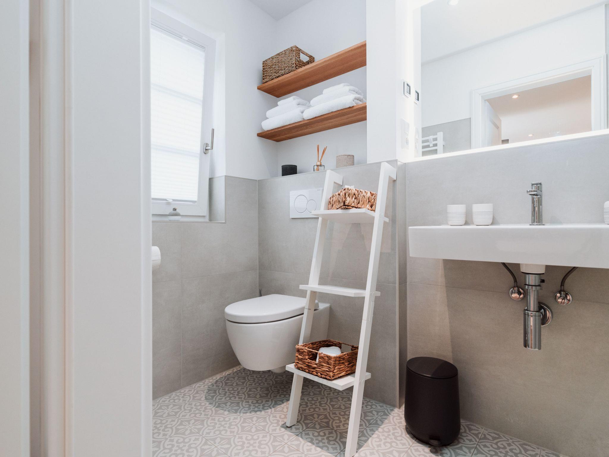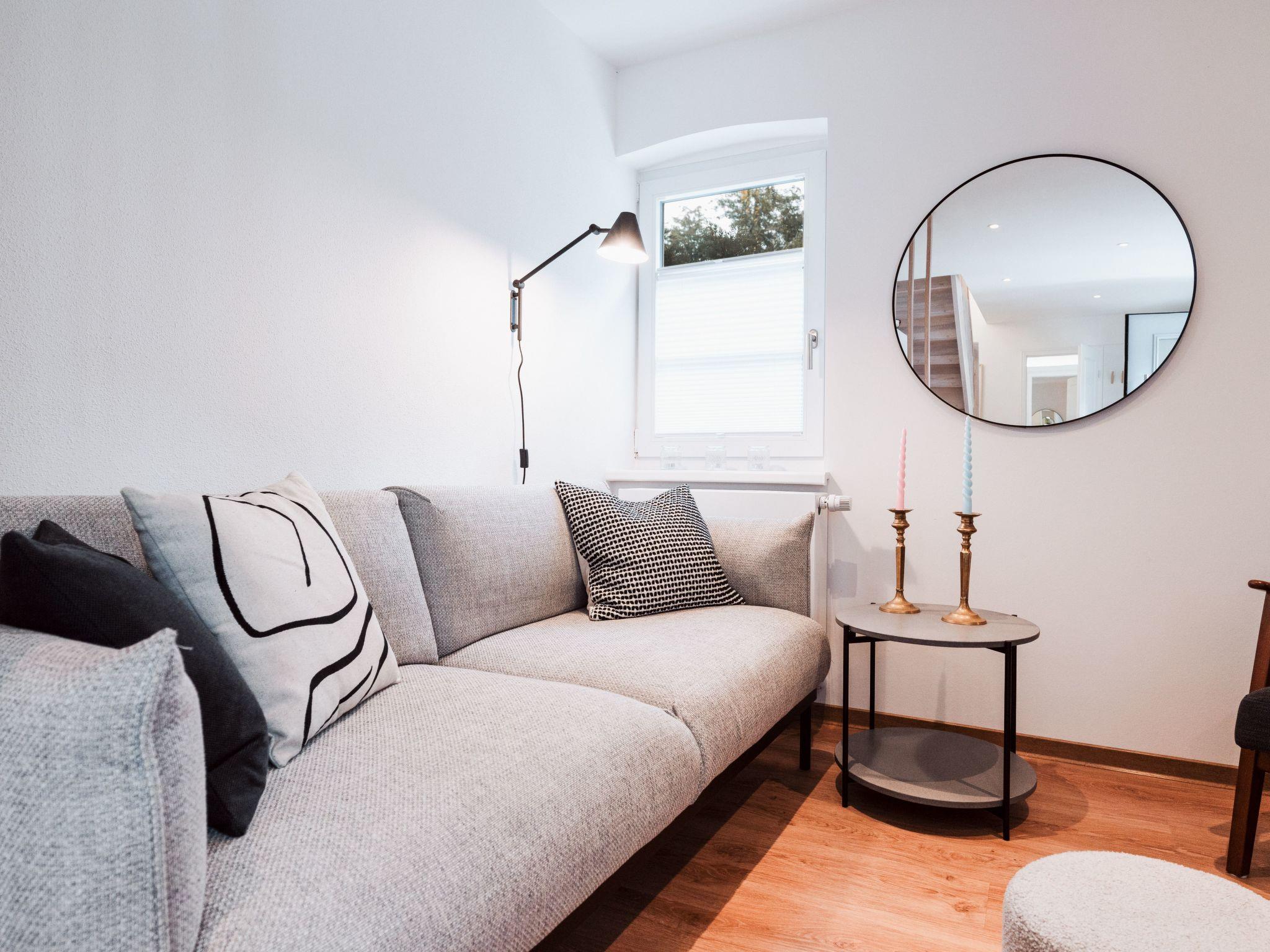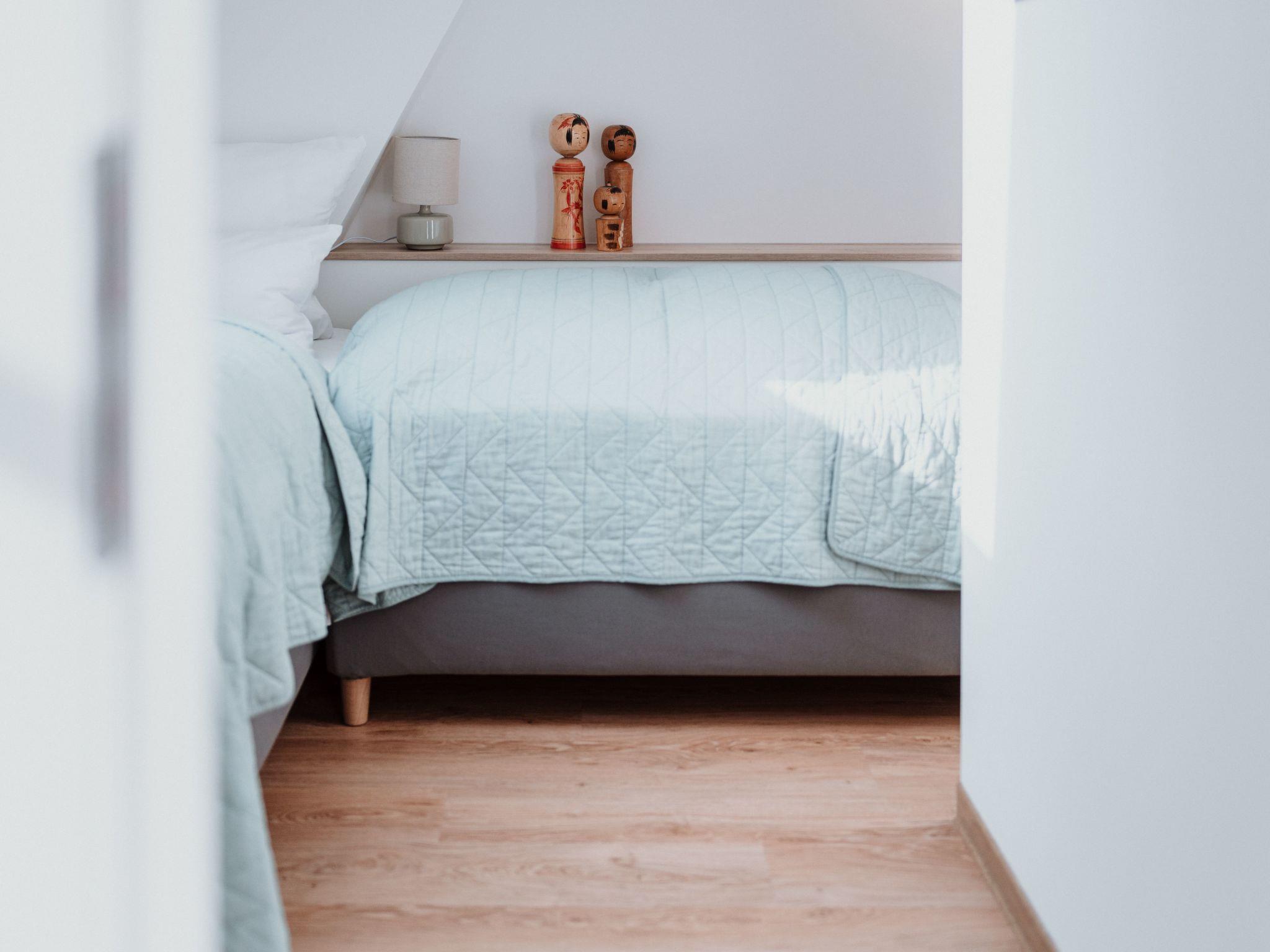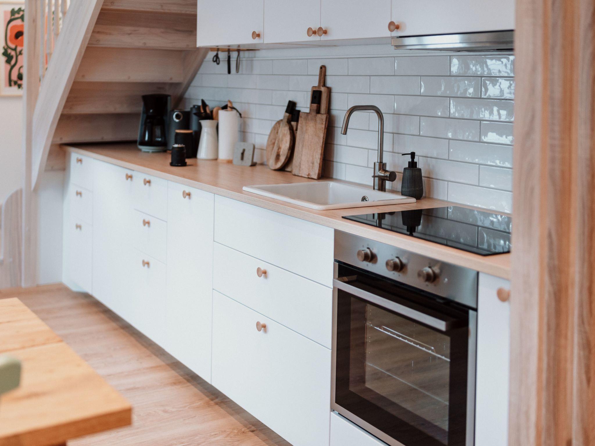 The barn has 2 bedrooms with comfortable box-spring beds for 4 people (1 x 160 cm, 2 x 90 cm), a large walk-in rain shower and underfloor heating, and an open-plan kitchen/living room with a 4-burner induction hob for cooking. Dishwasher, fridge with small freezer compartment are also available.