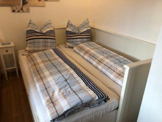Unser liebevoll eingerichtetes und ebenerdiges 90 qm großes Ferienhaus bietet ausreichend Platz für bis zu 4 Erwachsene und 2 Kinder (ggf. + 1 Baby) und verfügt über 2 Autostellplätze. Du gelangst von der Haustür aus in einen Vorflur mit Garderobe und einem Gäste WC. Über einen weiteren Flur sind alle weiteren Zimmer erreichbar. Es gibt 2 Schlafzimmer mit jeweils einem Doppelbett. Ein Babybett kann auf Anfrage dazu gestellt werden. Im Wohnzimmer können durch ein Schlafsofa zwei weitere Schlafplätze ermöglicht werden. Das Badezimmer verfügt über eine Dusche sowie eine Badewanne. Die hochwertige Küche beinhaltet neben diversen Elektrogeräten außerdem eine Spülmaschine. Ein Kinderhochstuhl kann ebenfalls auf Anfrage dazu gestellt werden. Direkt neben der Küche befindet sich ein großzügiger Hauswirtschaftsraum inklusive Waschmaschine, Bügelbrett und Bügeleisen. Alle Räume verfügen über Außenjalousien.