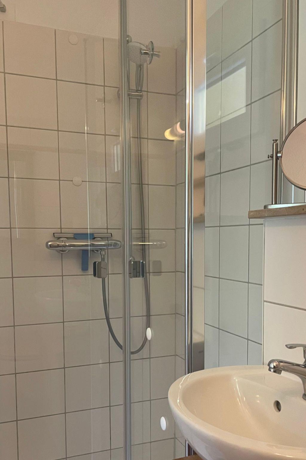 The flat has a combined living and sleeping area, the kitchen is equipped with a cooker/oven and fridge, the bathrooms have a shower/WC.