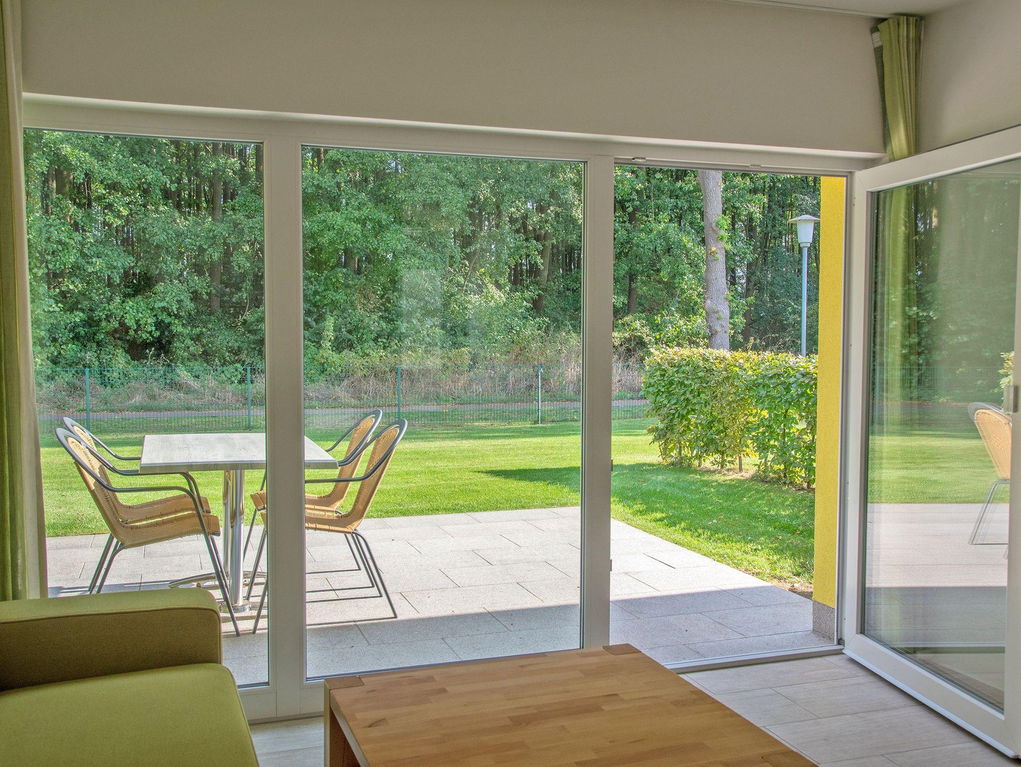 Der Wohnbereich ist der Zentrale Bereich dieses gut gelegenen Ferienhauses am See. Von dort aus erreichst du die Terrasse mit eigener Wiese, die zum verweilen einlädt. Der Wohnbereich ist ausgestattet mit einer Couch, einem LCD-TV sowie einem Esstisch.