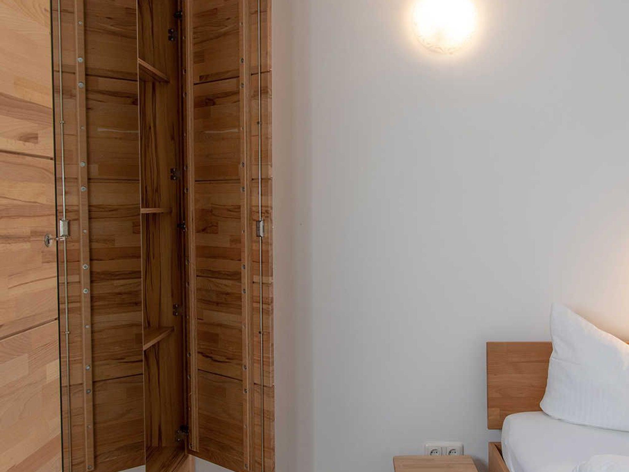 Das Elternschlafzimmer bietet dir ein 140x200 cm großen Bett und einen geräumigen Kleiderschrank (150 cm) für deine Urlaubsgarderobe. Wir möchten darauf hinweisen, dass das Bett, Wand an Wand steht und daher das einsteigen für manch einen schwierig werden könnte. Für Kinder stehen in einem weiteren Zimmer zwei Betten 90x200 cm und eine Kommode (90 cm) bereit. Die Betten sind für dich bezogen.