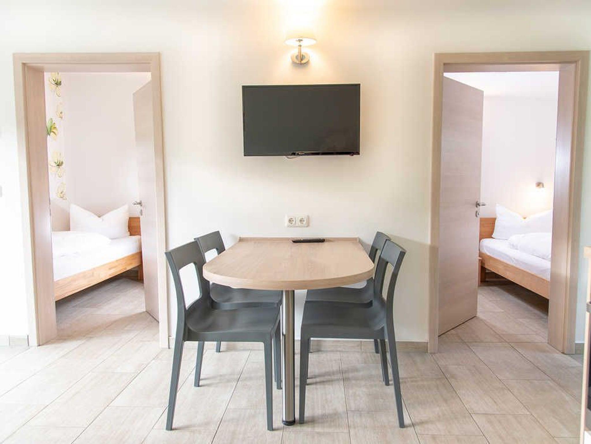 Das Elternschlafzimmer bietet dir ein 140x200 cm großen Bett und einen geräumigen Kleiderschrank (150 cm) für deine Urlaubsgarderobe. Wir möchten darauf hinweisen, dass das Bett, Wand an Wand steht und daher das einsteigen für manch einen schwierig werden könnte. Für Kinder stehen in einem weiteren Zimmer zwei Betten 90x200 cm und eine Kommode (90 cm) bereit. Die Betten sind für dich bezogen.
