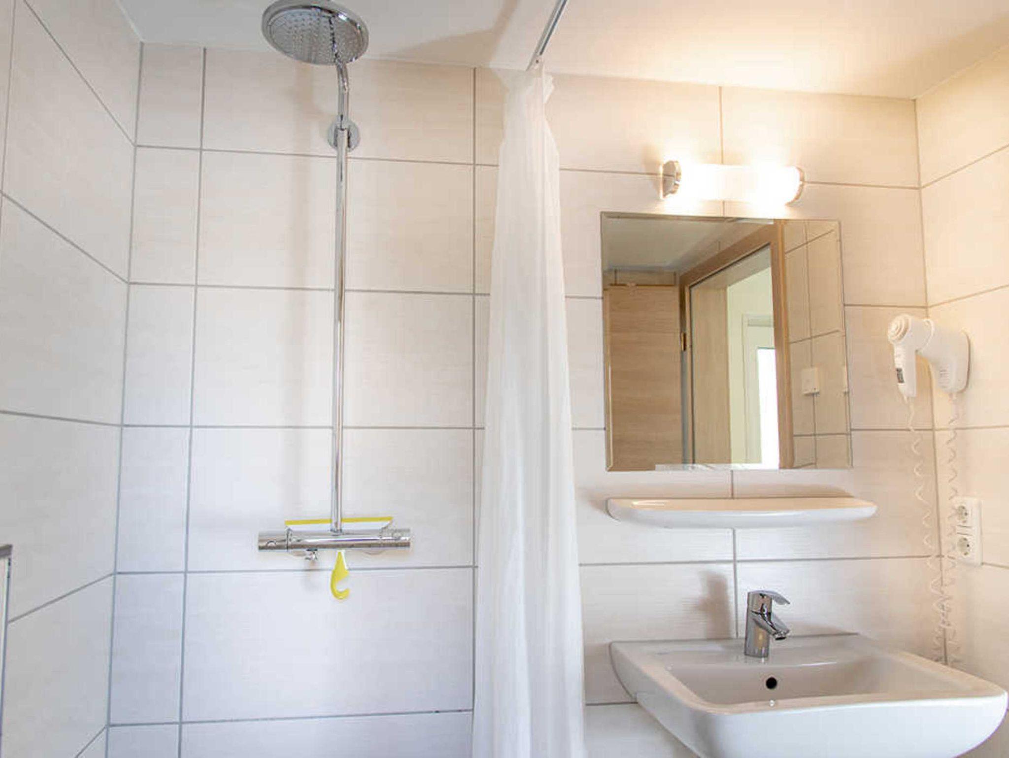 Das Duschbad ist klein und doch für alle Zwecke ausreichend. Bitte denkt an die Handtücher!