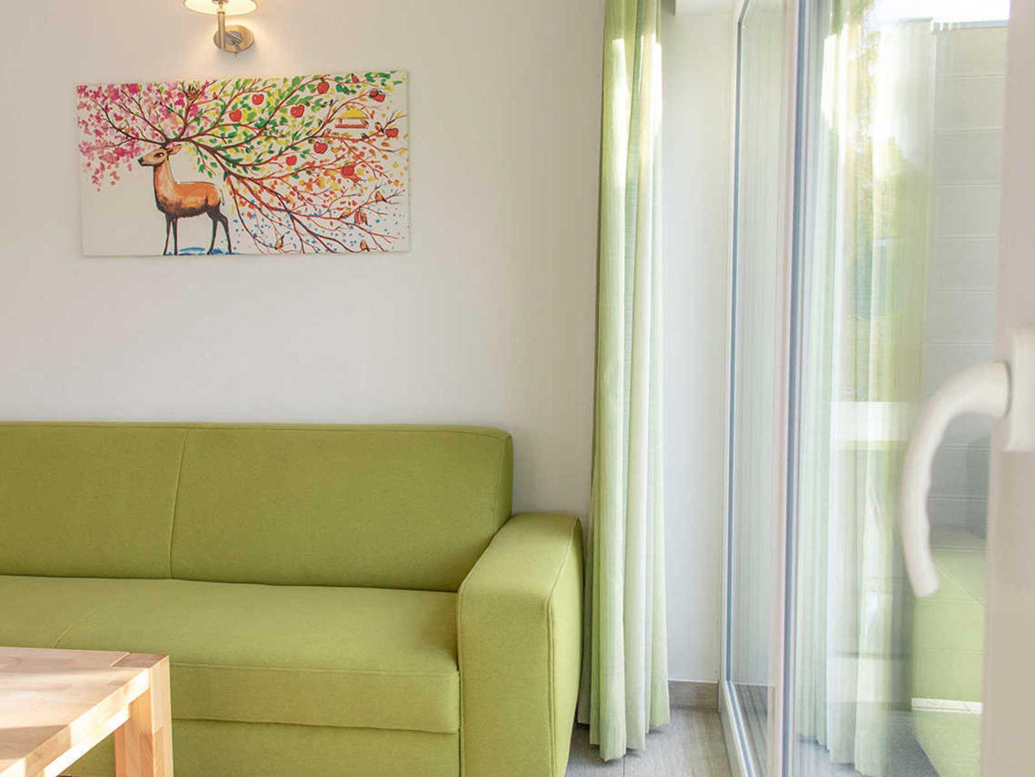 Der Wohnbereich ist der Zentrale Bereich dieses gut gelegenen Ferienhauses am See. Von dort aus erreichst du die Terrasse mit eigener Wiese, die zum verweilen einlädt. Der Wohnbereich ist ausgestattet mit einer Couch, einem LCD-TV sowie einem Esstisch.