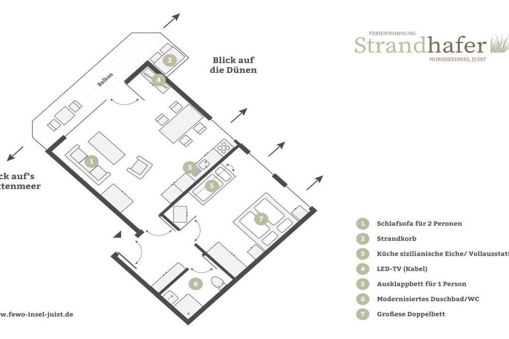 Apartment with a view of the dunes and mudflats, ideal for up to 5 people. The apartment was renovated in 2019. Further information: www.fewo-insel-juist.de