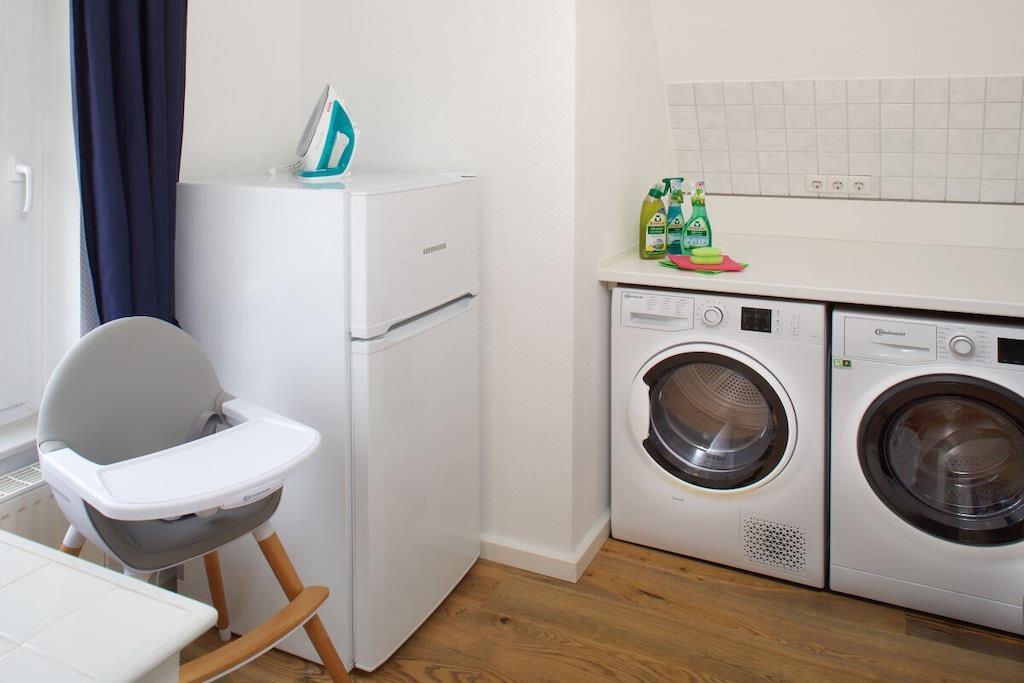 Absolutely centrally located, large south-facing balcony, elevator. 3 bedrooms, 2 bathrooms, large eat-in kitchen, utility room with washing machine, dryer.